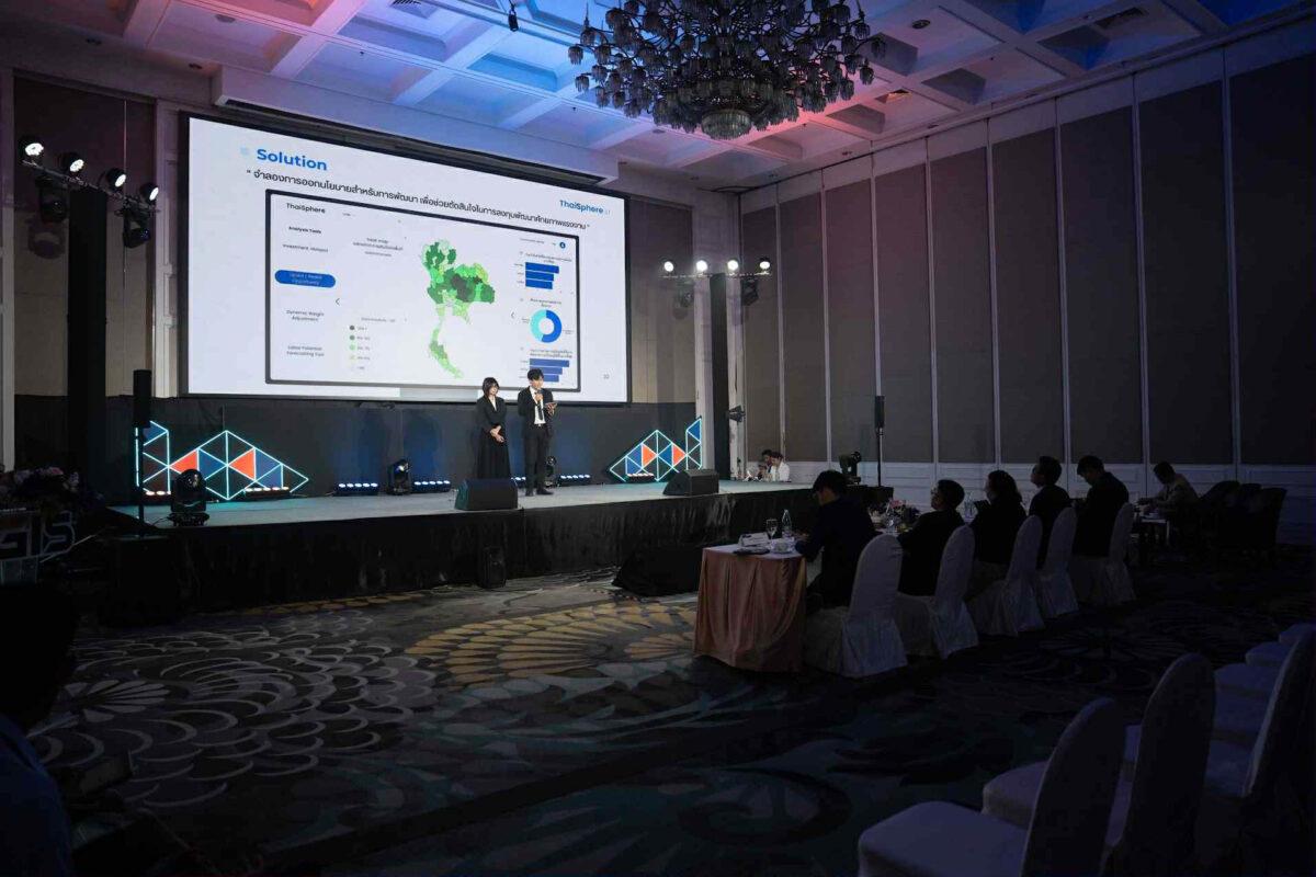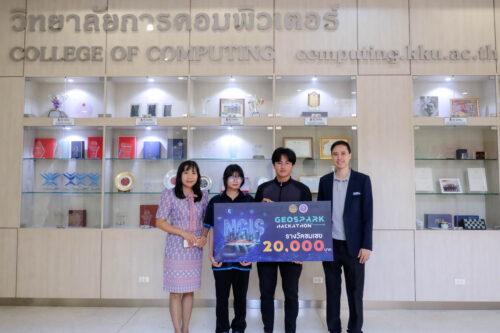 สมาชิกทีม TheApen คว้ารางวัลชมเชย เงินรางวัล 20,000 บาท ประกอบด้วย นายอภินัทธ์ จันทร์เขียว และ นางสาวพนิดา กุลนันทกานต์ นักศึกษาชั้นปีที่ 2 หลักสูตรภูมิสารสนเทศศาสตร์ โดยได้สร้างสรรค์ผลงานชื่อ ThaiSphere: From Data to Decision