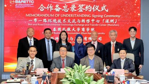On June 16, 2025, the Faculty of Business Administration and Accountancy at Khon Kaen University (KKBS), in collaboration with Smart Consulting and Development Co., Ltd., signed a Memorandum of Understanding (MOU) with the Belt and Road Environmental Technology Transfer Center (B&RETTC) in Shenzhen, China. This agreement forms part of the broader Belt and Road Initiative and focuses on digital platform development to promote green investment and sustainable low-carbon city models. The signing ceremony was attended by executives from all three organizations.
