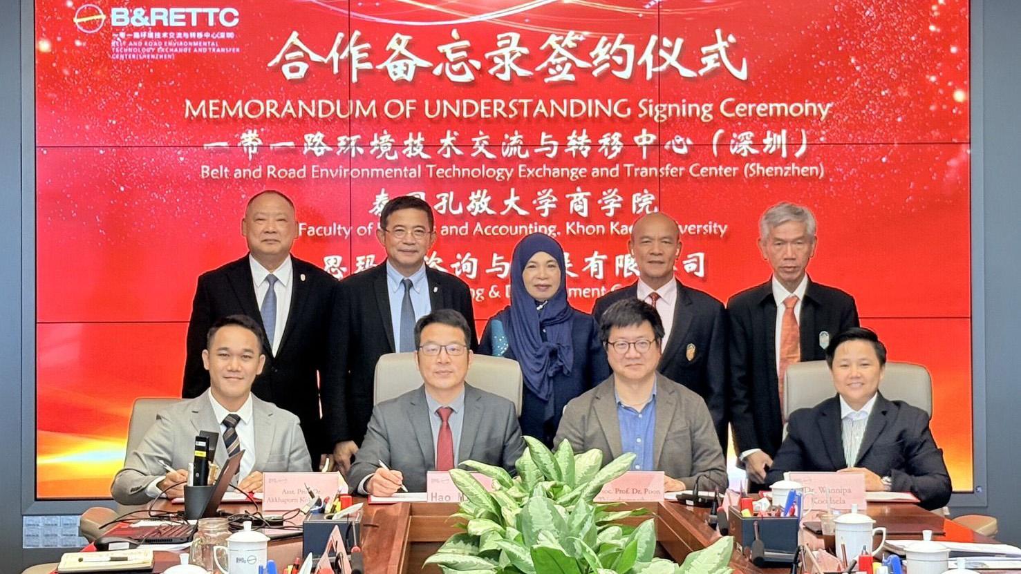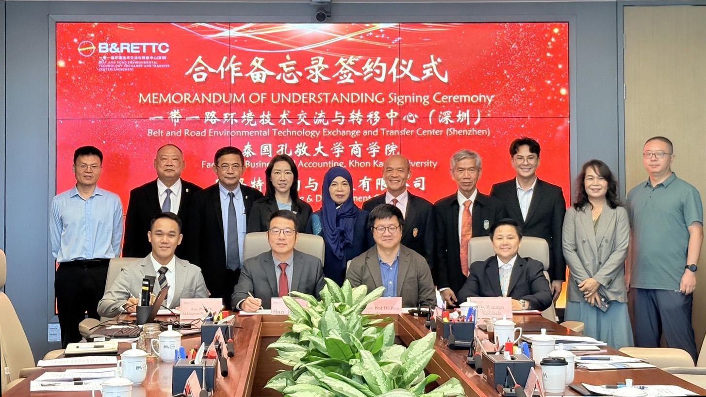 On June 16, 2025, the Faculty of Business Administration and Accountancy at Khon Kaen University (KKBS), in collaboration with Smart Consulting and Development Co., Ltd., signed a Memorandum of Understanding (MOU) with the Belt and Road Environmental Technology Transfer Center (B&RETTC) in Shenzhen, China. This agreement forms part of the broader Belt and Road Initiative and focuses on digital platform development to promote green investment and sustainable low-carbon city models. The signing ceremony was attended by executives from all three organizations.