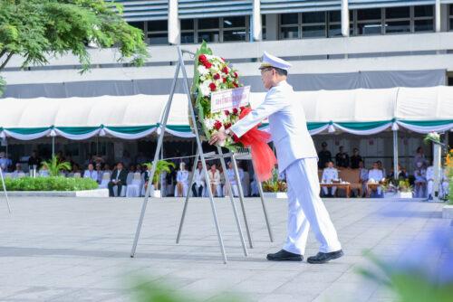 Associate Professor Charnchai Panthongviriyakul, M.D., President of Khon Kaen University, led university personnel in paying tribute to the Prince Father’s profound contributions. The ceremony, held before the royal monument in front of Srinagarind Hospital, Faculty of Medicine, Khon Kaen University, was presided over by Mr. Kaisorn Kongchalad, Governor of Khon Kaen Province.