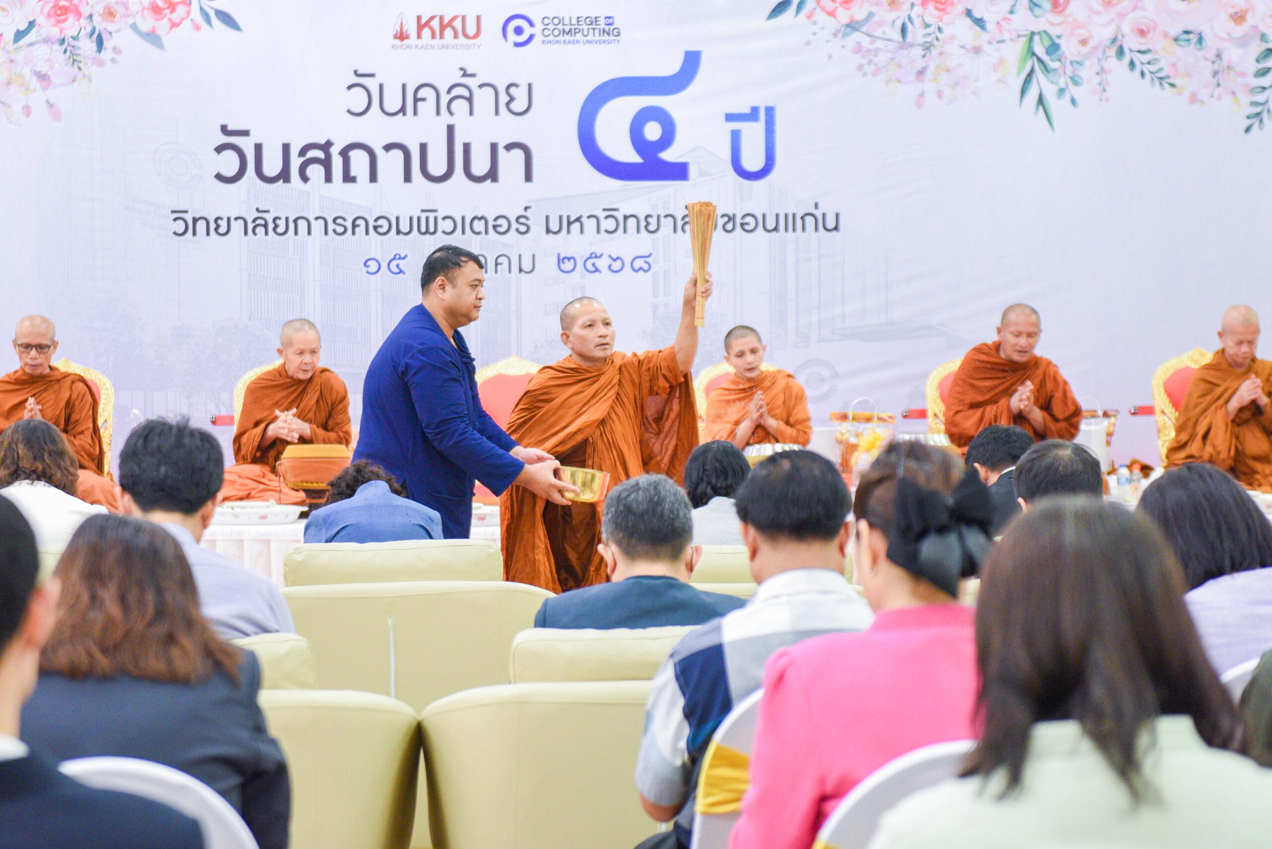 Khon Kaen, Thailand — Wednesday, October 15, 2025 — Khon Kaen University (KKU) organized a merit-making and alms-offering ceremony to commemorate the 4th anniversary of the College of Computing at 7:00 a.m. on the 1st Floor, Witthiwiphas Building. The ceremony aimed to bless the institution and its members while upholding KKU’s longstanding cultural traditions.