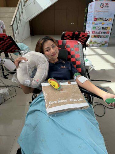 Ms. Prowsaeng Siriphanuwat, International Relations Officer, Division of International Affairs, shared her personal motivation: “The first time I donated blood, it was for a kindergarten child who was ill. I just wanted to help. Giving blood makes me feel at peace — it’s about giving without expecting anything in return, hoping that my blood can help restore someone’s health. Today marks my second donation. As I passed by the President’s Building, I decided to join again, thinking that this small act could make a big difference in someone’s life.”