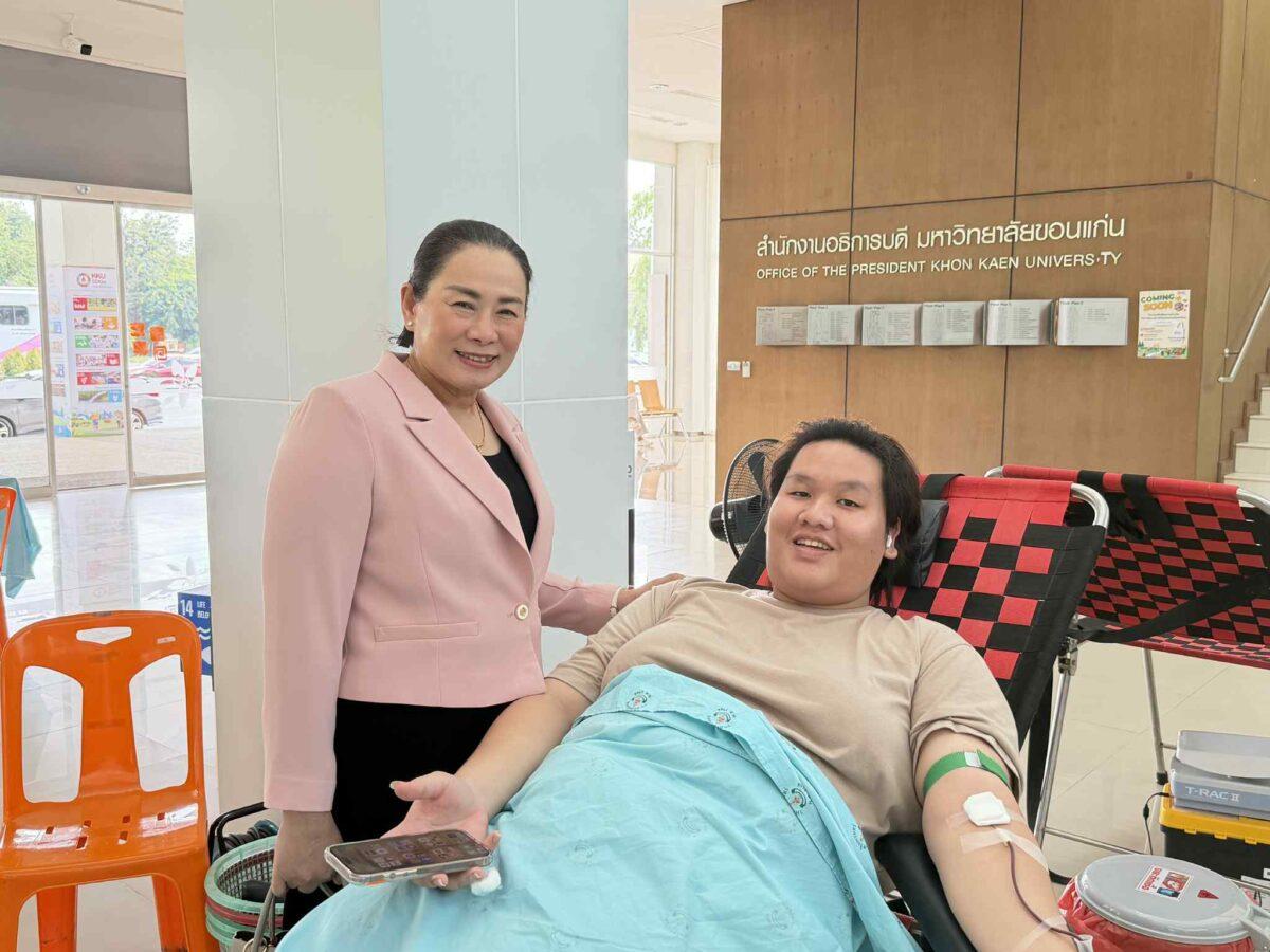 The activity, held at the first-floor lobby of Sirikunakorn Building, Office of the President, welcomed enthusiastic participation from KKU administrators, faculty members, staff, students, and members of the public. A total of 42 qualified donors, including 9 first-time donors, contributed 16,800 cc of blood to support the hospital’s emergency reserves.
