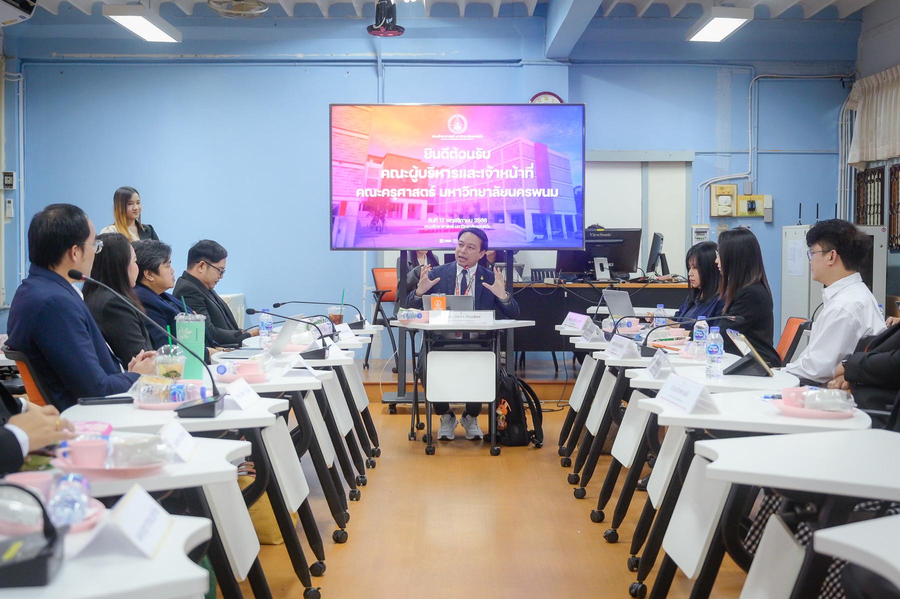 17 November 2568 – The Faculty of Education, Khon Kaen University (KKU), led by Assoc. Prof. Issara Kanjak, Ph.D., Dean of the Faculty of Education, formally welcomed Asst. Prof. Kriangkrai Phasuta, Ph.D., Dean of the Faculty of Education, Nakhon Phanom University, along with executive team members and staff. The delegation visited the KKU Faculty of Education to study its operations and exchange knowledge. The primary objectives of this visit were to explore strategies for educational management and to foster academic collaboration between the two institutions.