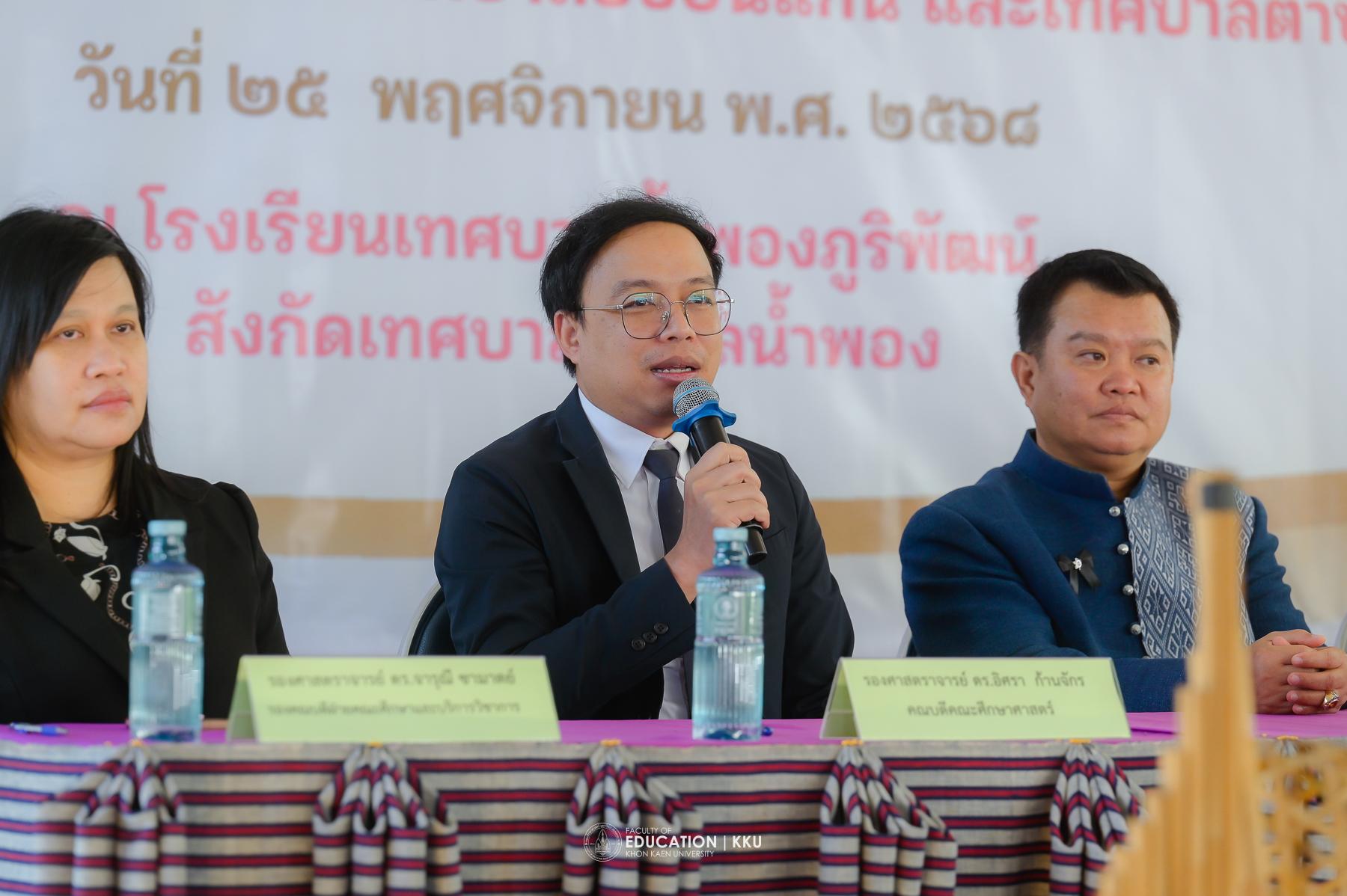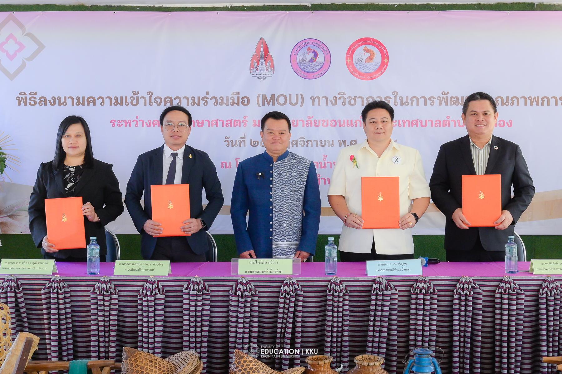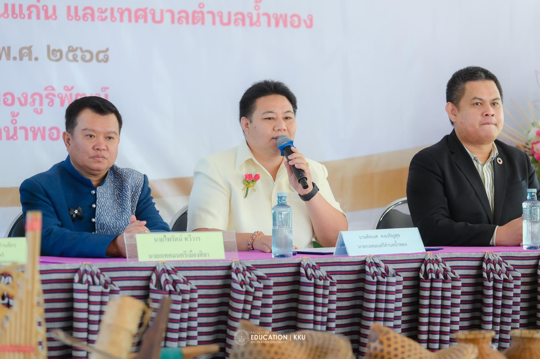 The signing ceremony was presided over by Mr. Khakkanet Kongcharoensuk, Mayor of Nam Phong Sub-district Municipality. Associate Professor Issara Kanjak, Ph.D., Dean of the Faculty of Education, Khon Kaen University, attended the event along with university administrators. Mr. Thepnakorn Namwong, Director of Nam Phong Purinphat Municipal School, delivered the opening report. Witnesses to the signing included Assistant Professor Sirisak Laochankham, Ph.D., Dean of the College of Local Administration, Khon Kaen University.