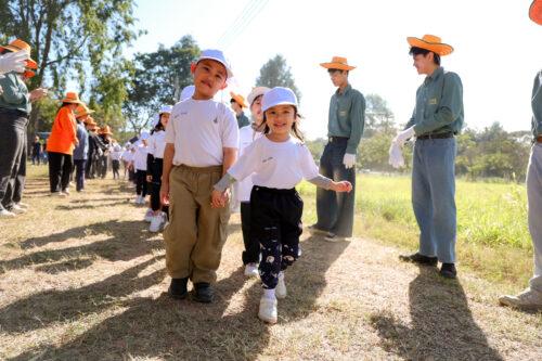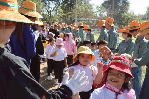 Ms. Angkhanawan Thamma, Assistant Director for Administration and Personnel Development, mentioned that the school plans academic activities throughout the year under the learning unit, “Rice and the Farmers.” Teachers first educate the children about rice, seasons, and farming steps before the actual field trip.
