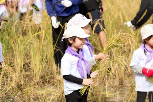 Following the ceremony, the nursery pupils participated in activities such as rice harvesting, threshing, and the ‘Kwan Khao’ (rice blessing) ritual. These activities provided profound and enjoyable direct experience with agricultural vocations, Thai culture, and local wisdom. Furthermore, the activities strengthened the children’s IQ, EQ, and enhanced their experiential learning skills outside the classroom.