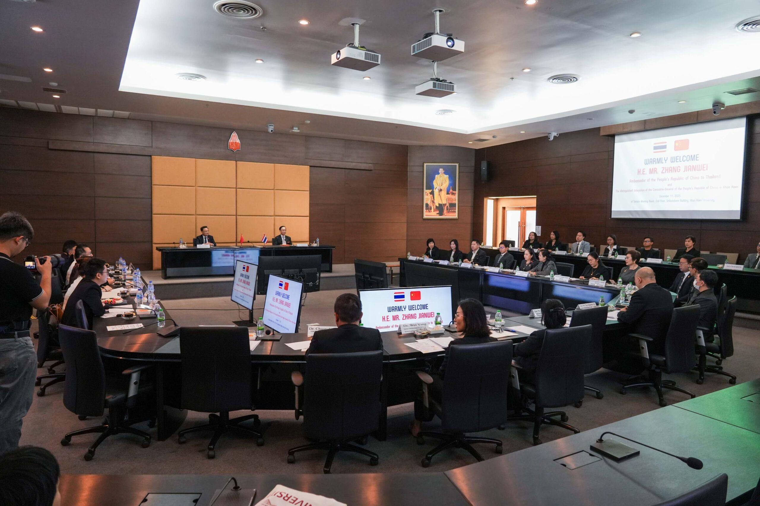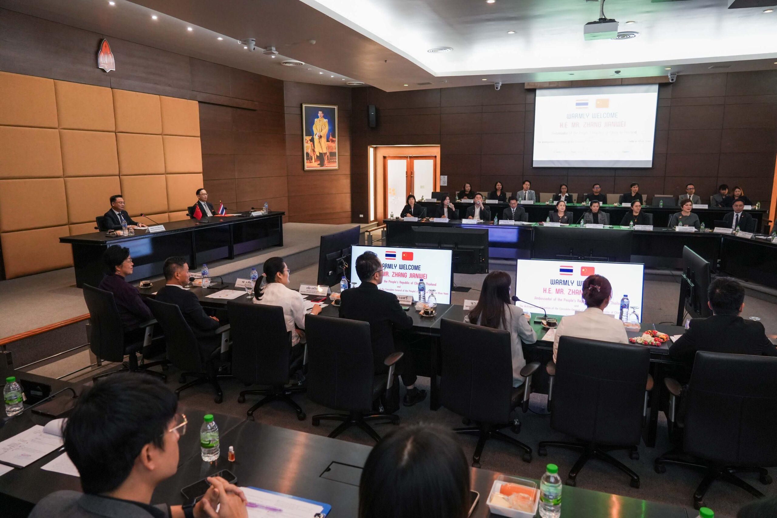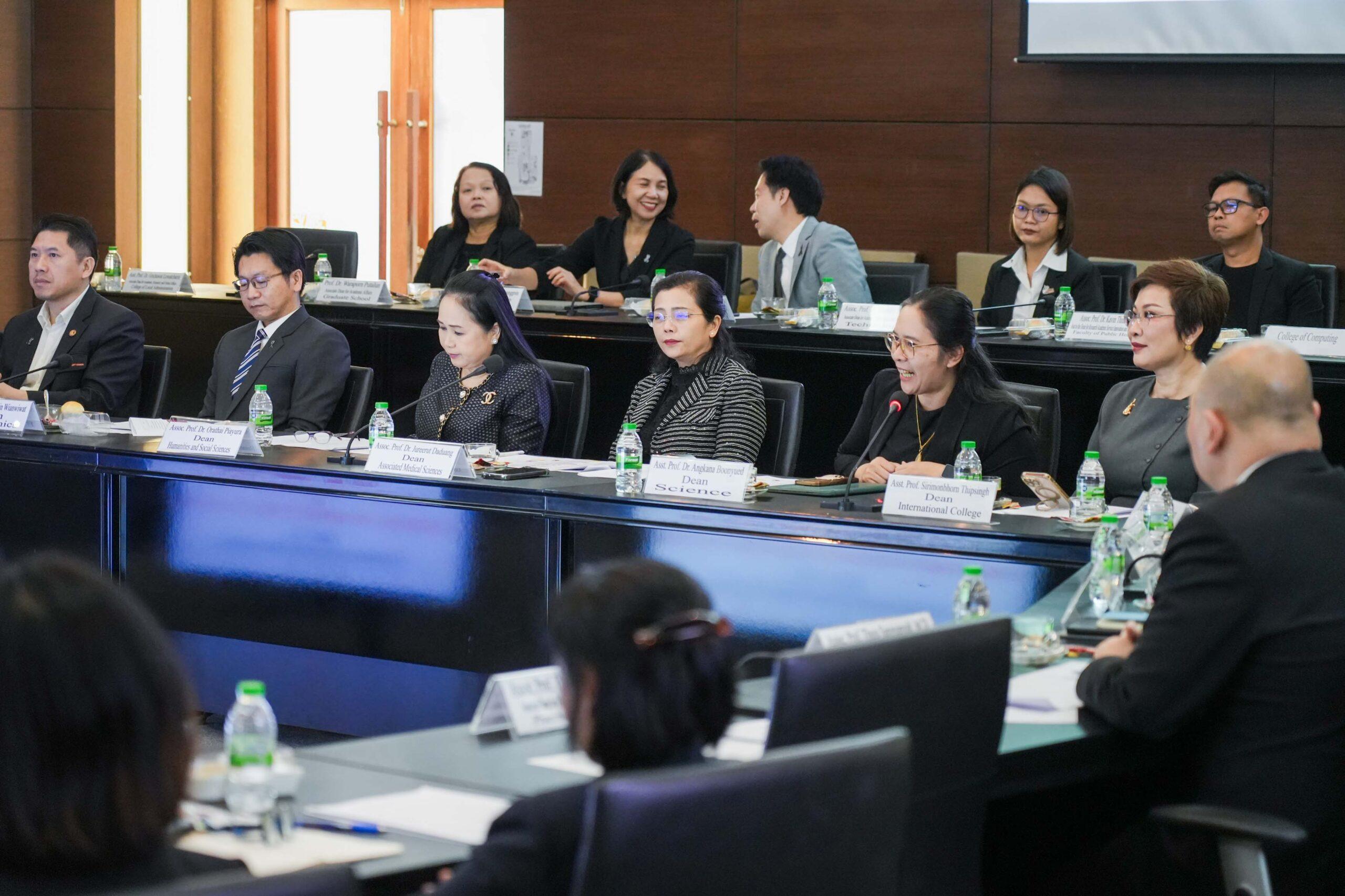 The delegation also included representatives from the Chinese Embassy and Consulate-General. The visit, held at the Sarasin Meeting Room, 2nd Floor, Sirikunakorn Building, aimed to discuss potential avenues for developing Thai–Chinese cooperation in education, research, and innovation.
