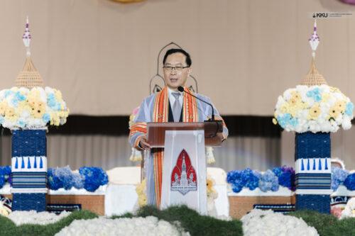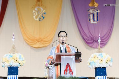 Assoc. Prof. Charnchai Panthongviriyakul, M.D. , President of Khon Kaen University, delivered a keynote address to the new graduates. He emphasized that while the hard skills learned are essential, other abilities developed during their studies—such as analytical thinking, creativity, and communication—will be crucial tools for success in their professional lives.