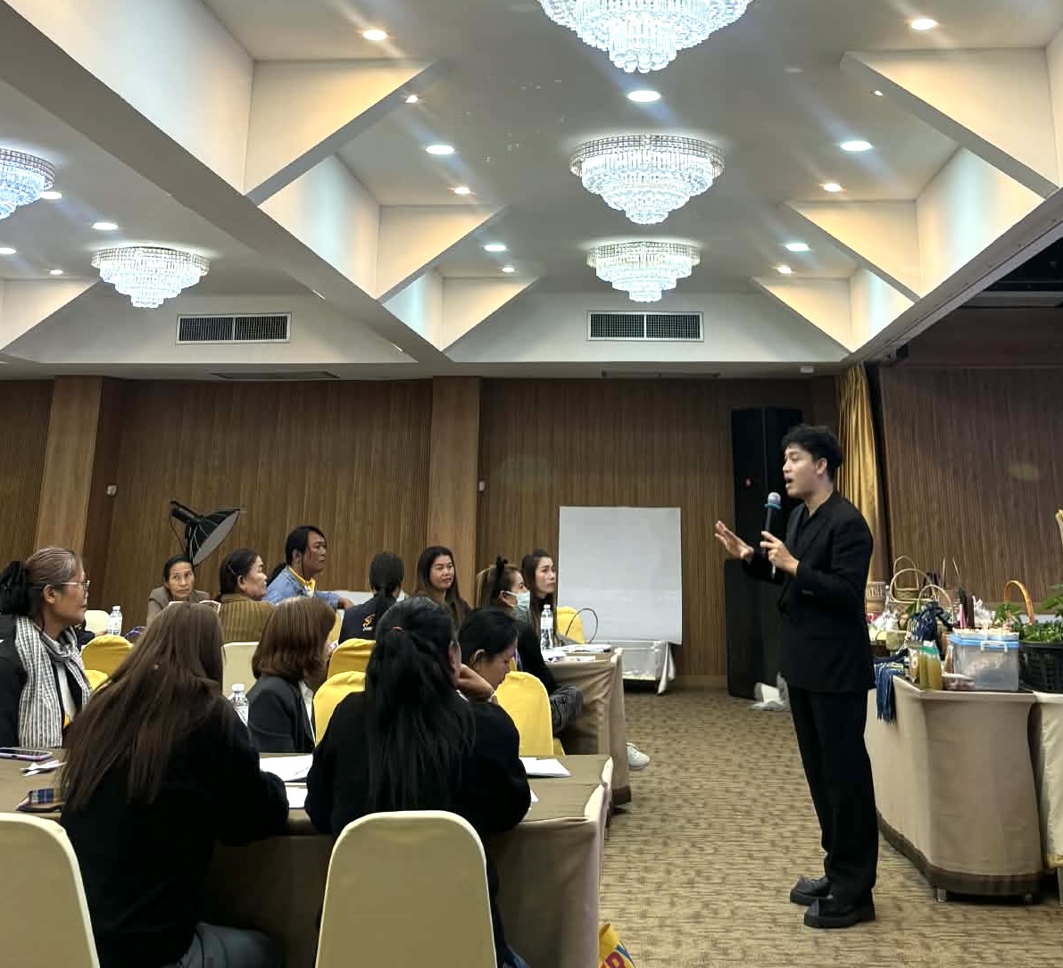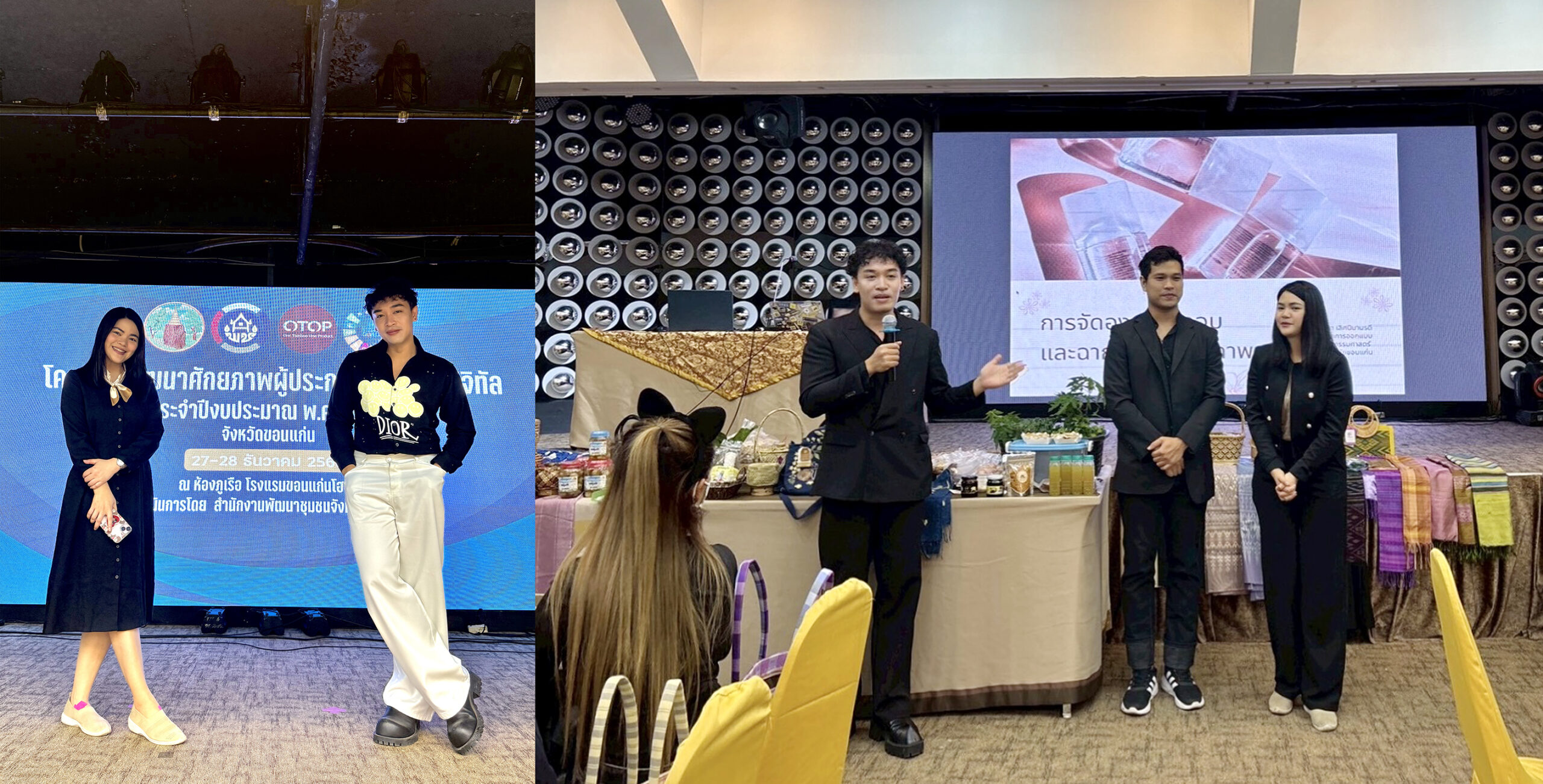 The Department of Design, Faculty of Architecture, Khon Kaen University (KKU), spearheaded by Lecturer Dr. Akkhaphon Lamuang and Lecturer Monthida Lertnimanradee, served as instructors in a hands-on training programme. This initiative, titled “Developing Entrepreneurs towards Thailand 4.0,” was conducted in collaboration with Mr. Chaturaphit Phimsaeng, a specialist in content creation and online marketing. The goal of the programme was to systematically enhance the capabilities of OTOP entrepreneurs, enabling them to adapt and compete effectively in the digital marketplace.