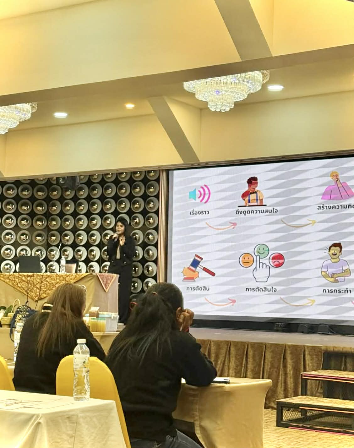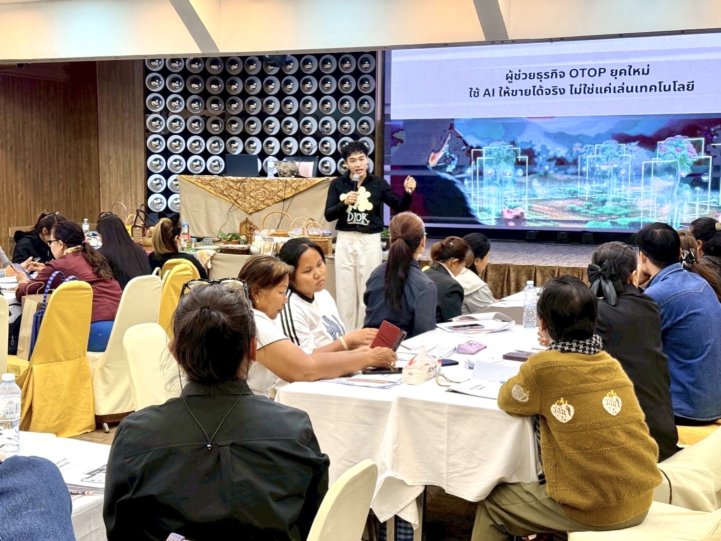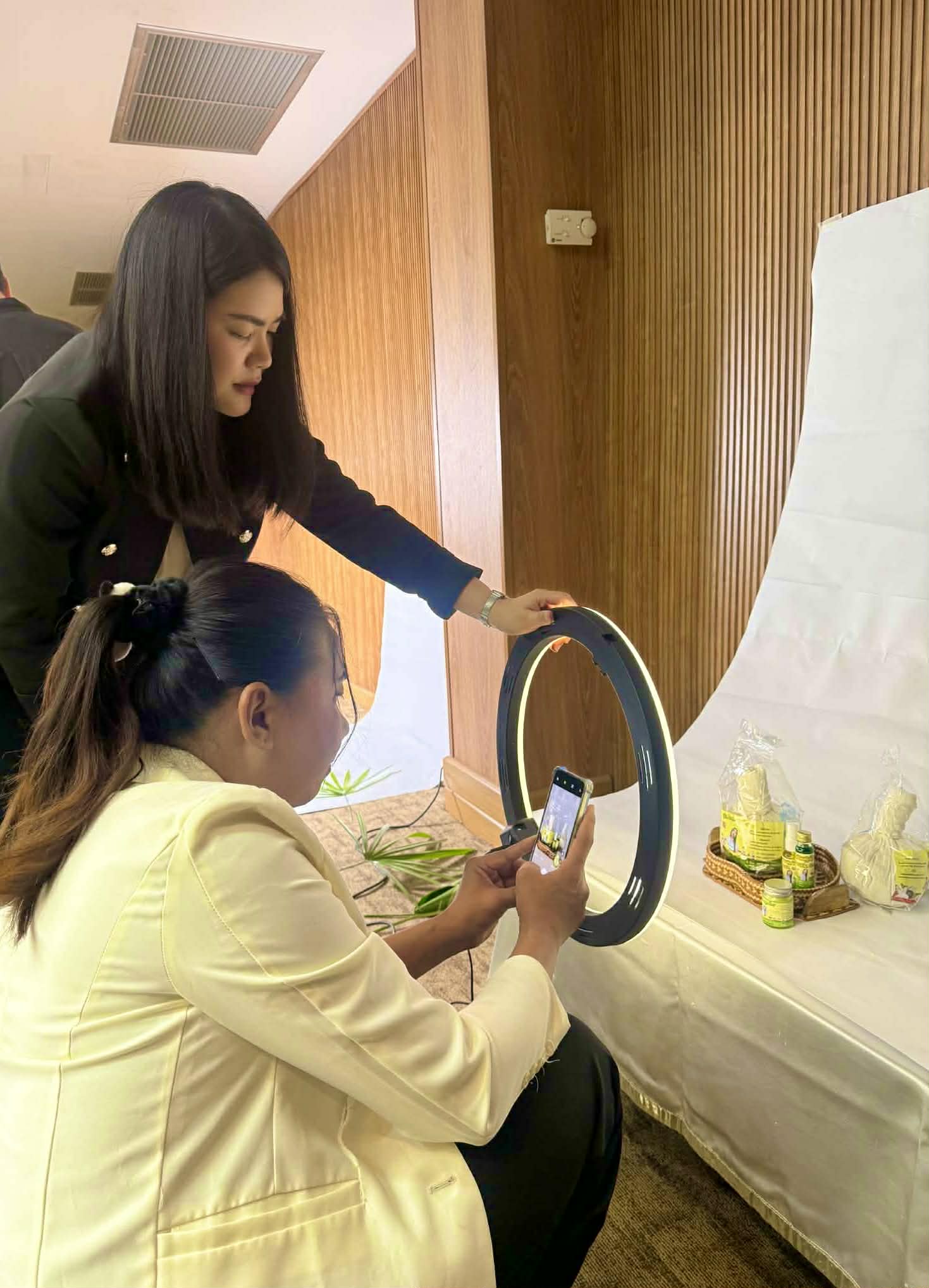 The training concretely promoted the concept of “AI x OTOP.” This included utilising AI to analyse market trends and consumer behaviour, survey competitors, select optimal sales channels, assist in writing effective advertising copy, and generate product images and content tailored for the online market. These applications help reduce operational costs, increase accuracy, and enhance the competitive potential of community entrepreneurs in the digital age.