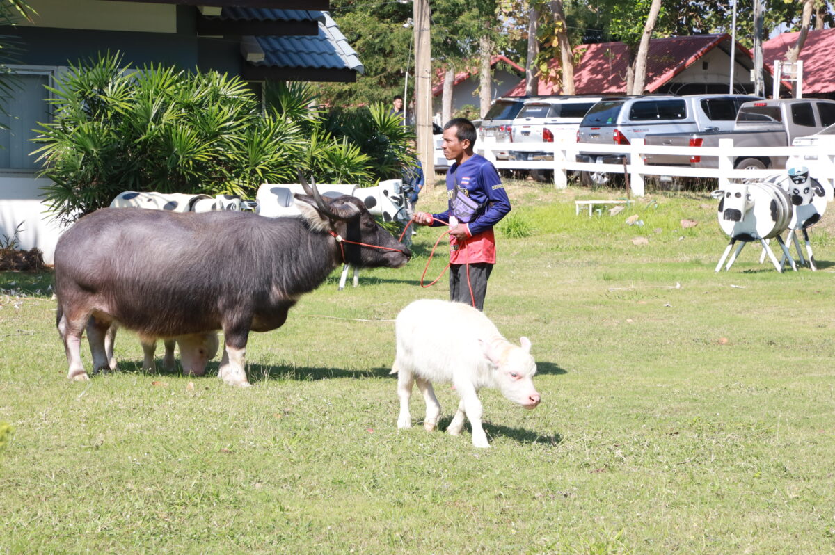 The atmosphere at today’s press conference was welcoming, featuring booths from numerous public and private organisations. A special highlight was the exhibition of “Midget Buffalo” (Dwarf Buffalo) from the Department of Livestock Development, allowing attendees to view and interact with this rare native breed. This activity generated excitement, encouraging everyone to attend the Midget Buffalo competition scheduled for the main event.