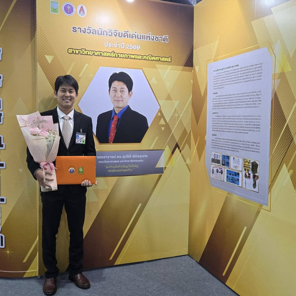 Khon Kaen University’s Faculty of Science celebrates the success of its staff, students, and alumni who received prestigious National Research Awards 2026 from the National Research Council of Thailand (NRCT) at the Ministry of Higher Education, Science, Research and Innovation, during the National Inventors’ Day 2026 event held on 8 January 2026 at BITEC Bangna Exhibition and Convention Centre.