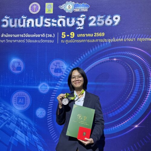 Miss Phatworin shared that she felt deeply honoured to receive this prestigious recognition, noting that the achievement reflects the collective dedication and sustained effort of the entire research team. She emphasised that the award highlights the value and future potential of the research and serves as a strong motivation to further develop medical innovations that can enhance public quality of life.