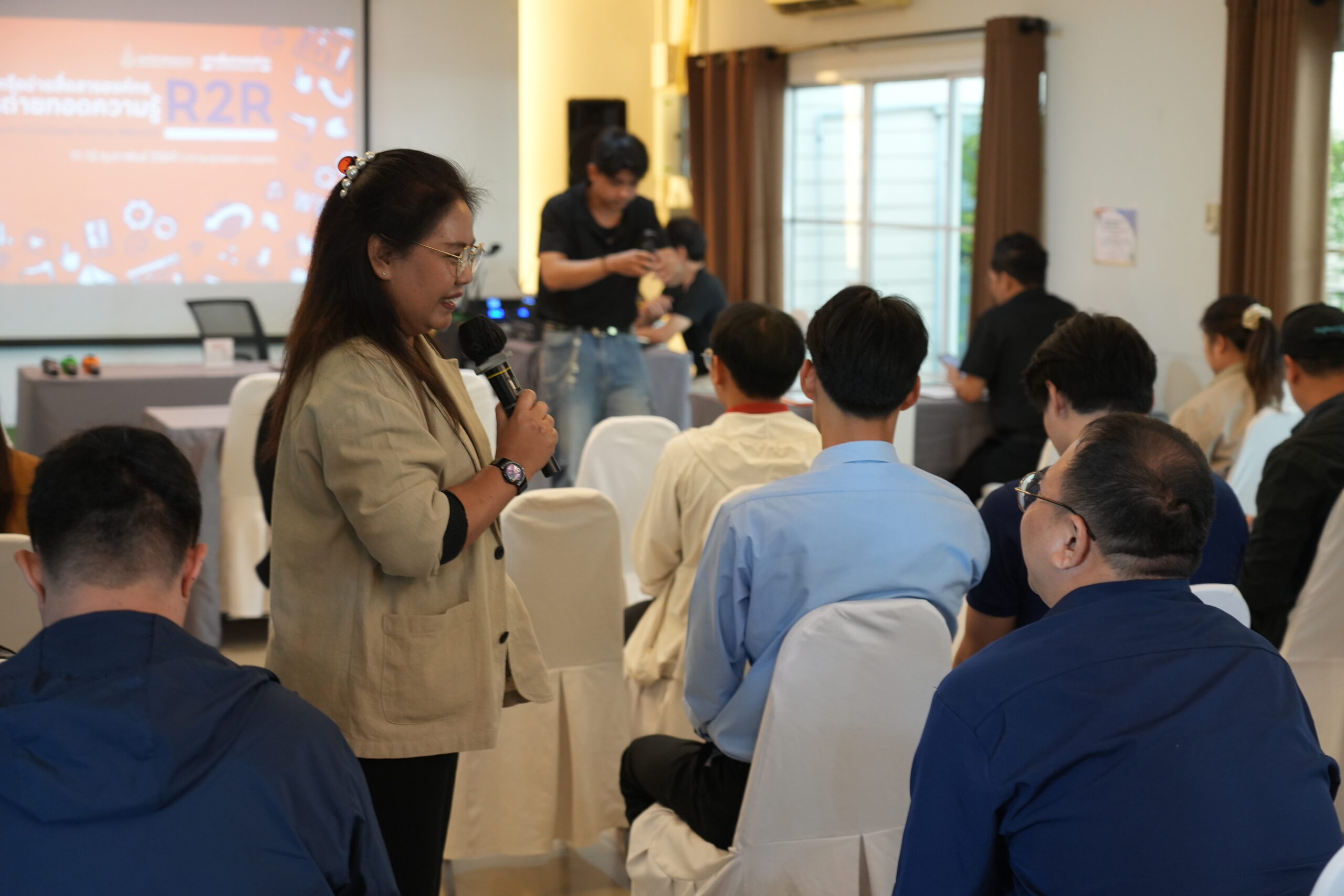 The two-day programme featured numerous activities, including the “R2R Communication Lab” for network building led by Mr. Pasakorn Tueaprakhon and Mr. Itthiwat Janchaichit. A key segment was the “Professional Communication Network” panel discussion, where representatives shared the best practices in communication and organisational brand building. Panellists included Ms. Nitiya Srivoradetpaisal (Library), Ms. Kuntirapak Sodmeskulpacdee (Faculty of Engineering), and Ms. Kamonporn Wannaprake (Faculty of Medicine). The discussion was moderated by Ms. Raviporn Saisaenthong.