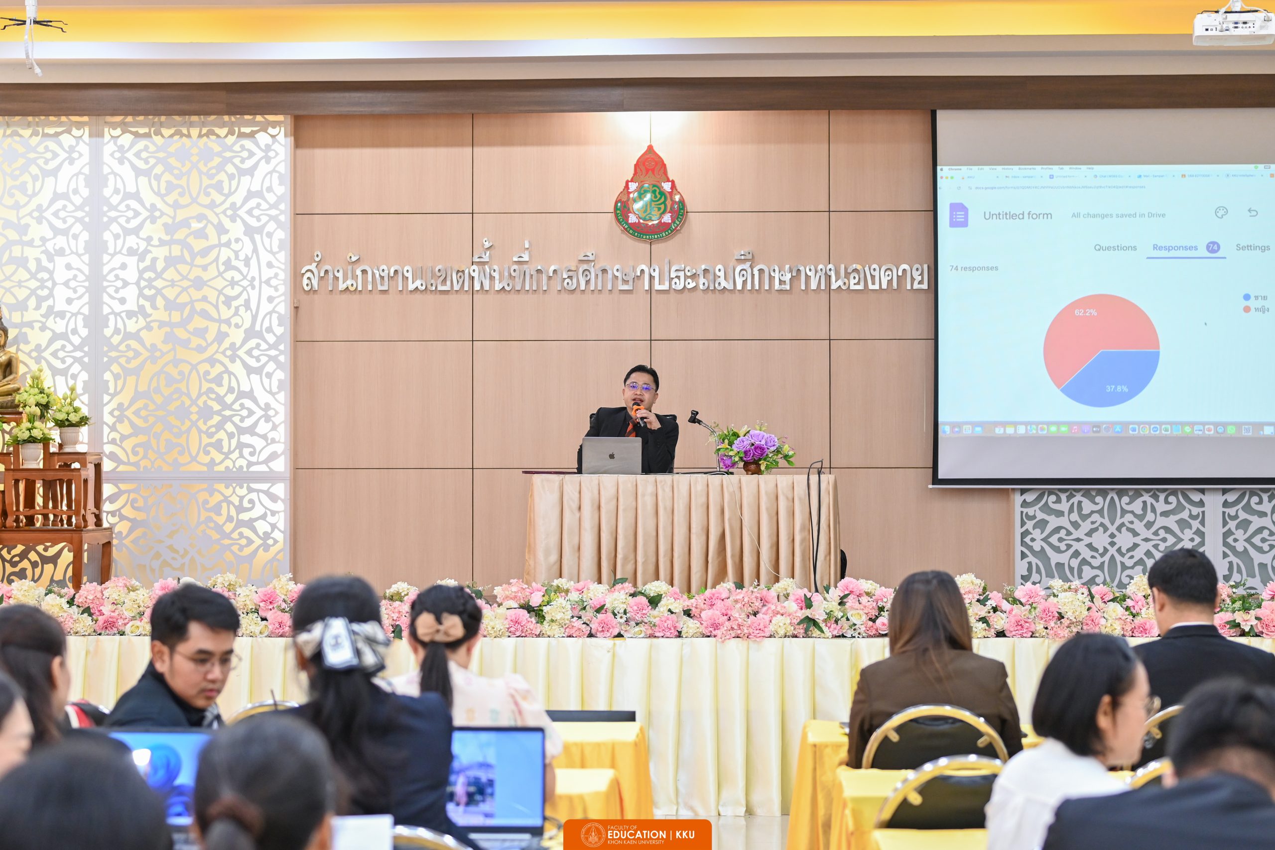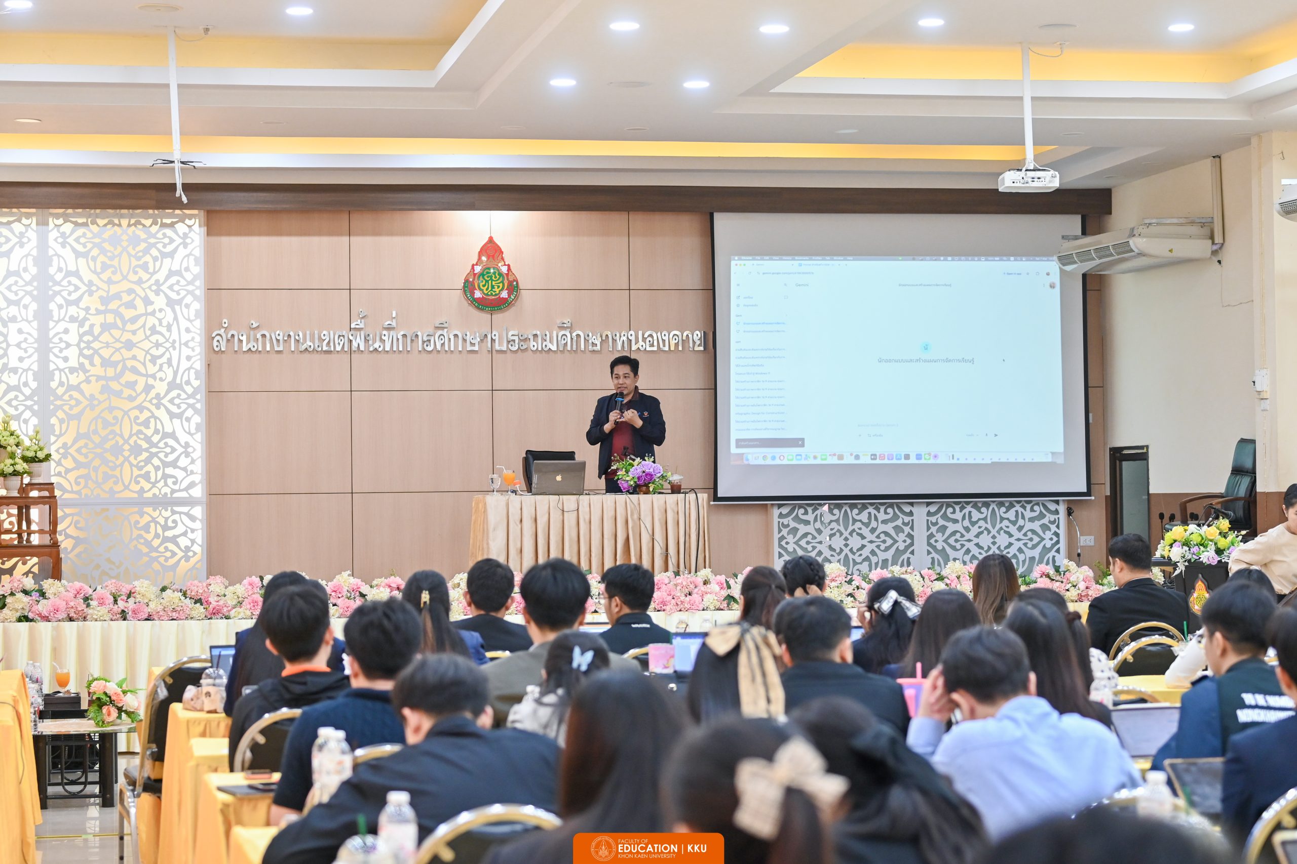 On 7 March 2026, the Faculty of Education, Khon Kaen University, in collaboration with the Education Alumni Association and the Nong Khai Primary Educational Service Area Office 1 (Nong Khai PESAO 1), organised a workshop titled “R&D x AI: A New Power in Developing Teachers and Educational Personnel Towards Quality Learning Management.” The event was held at Nong Khai PESAO 1 and represents an important initiative under the strategy “KKU Teachers Never Expire,” which aims to strengthen professional networks and prepare educators to address the challenges of 21st-century education.