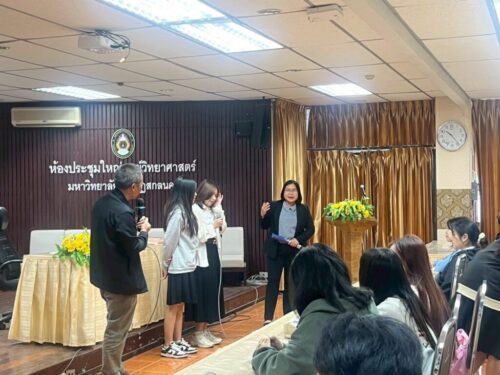On 20 February 2026, the committee travelled to Sakon Nakhon Rajabhat University to conduct a similar proactive guidance session as the one held in Roi Et. This event was designed to comprehensively reach target student groups in the area, inspiring them and illustrating the diverse and challenging career futures available in applied mathematics. The session drew significant interest from students eager to develop skills in data analysis and the application of mathematics in the modern digital world.