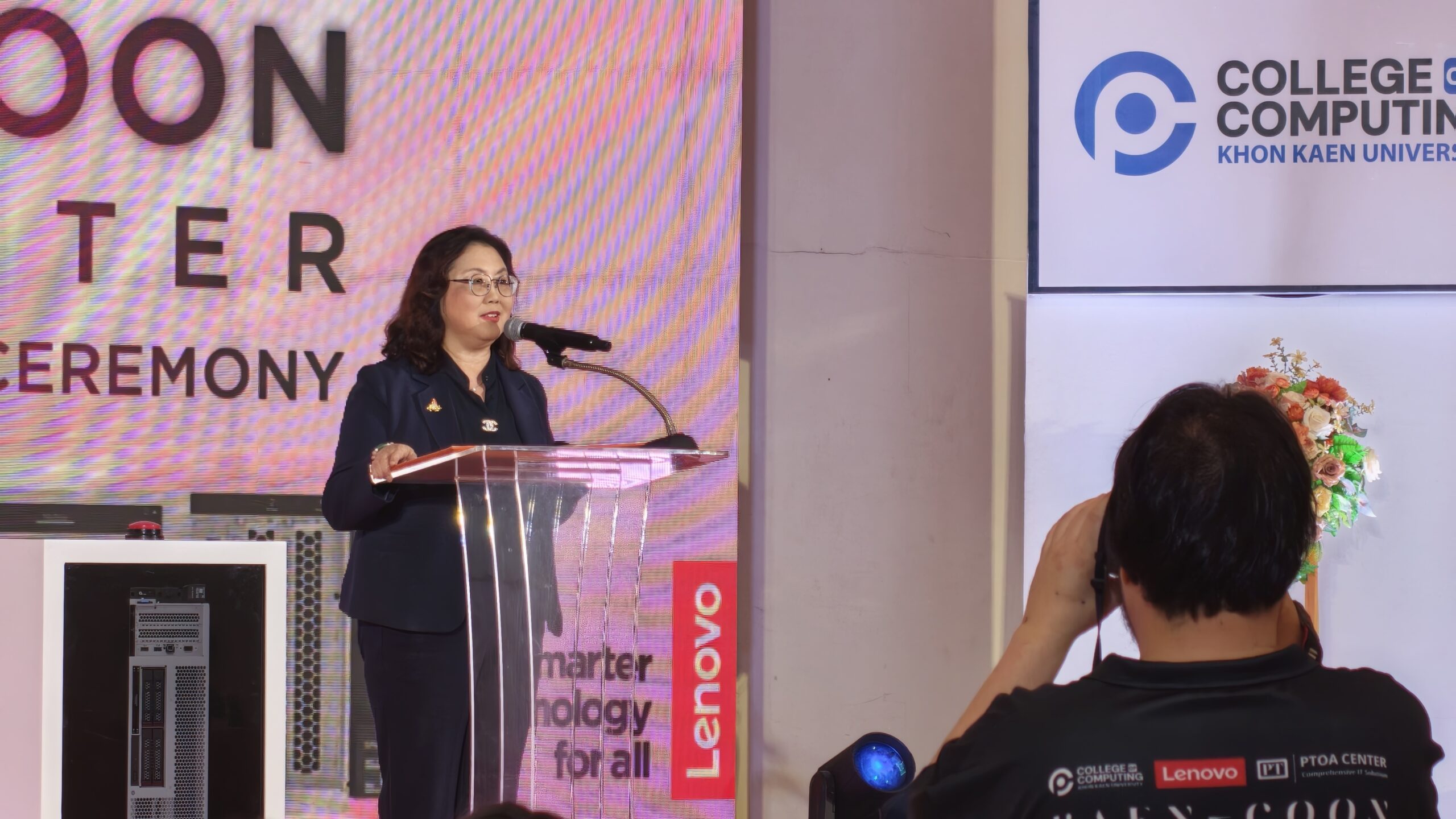 “The name ‘Koon’ (คูณ) has a deep, layered meaning. It represents the ‘Ton Koon’ (Golden Shower Tree), the symbolic flower of Khon Kaen province, and signifies a vital ‘foundation’ for our college. In mathematics, ‘Koon’ means ‘multiplier,’ symbolising exponential growth and prosperity. I intend for this name to represent an AI cluster that will drive our academic excellence,” said the Dean. “Furthermore, the ‘Koon’ AI Cluster is a powerhouse that supports not only AI research but also extends to Computer Science, Geographic Information Systems (GIS), and Cybersecurity. Students and faculty who have begun using the system report that it is exceptionally powerful. I extend my sincere gratitude to our partners, Lenovo and NVIDIA, for their collaboration in advancing this knowledge. We aim for ‘Koon’ to become a pivotal centre for producing high-quality AI professionals for the nation.”