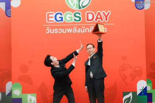 Assoc. Prof. Dr. Chanchai Panthongviriyakul, President of Khon Kaen University, stated that the KKU EGGs Day: Student Synergy Day project honors exemplary students who embody the EGGS Identity, which comprises entrepreneurial mindset, global perspective, continuous development orientation, and sustainability awareness. This recognition reflects the value students gain from their work and extracurricular activities. He encouraged the recipients to let today’s success be a significant source of motivation for self-development and creating benefits for society in the future.