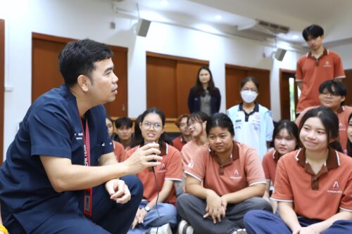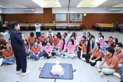 On 18 March 2026, an atmosphere of energy and determination filled the room as second-year students from the Occupational Health and Environment programme, Faculty of Public Health, Khon Kaen University, participated in a training workshop on basic life support (CPR) and the use of an automated external defibrillator (AED). This was more than a classroom lecture; it was a hands-on simulation that guided students through every critical step, from assessing scene safety and evaluating a patient to making a proper emergency call, performing CPR, and using an AED with precision.