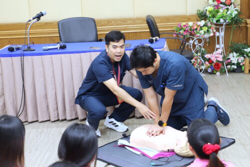 The training was led by the QSHC CPR team from the Queen Sirikit Heart Center, whose expert instructors delivered intensive, engaging, and enjoyable instruction. They created a vibrant learning environment, building the confidence of participants to act decisively in a real emergency.