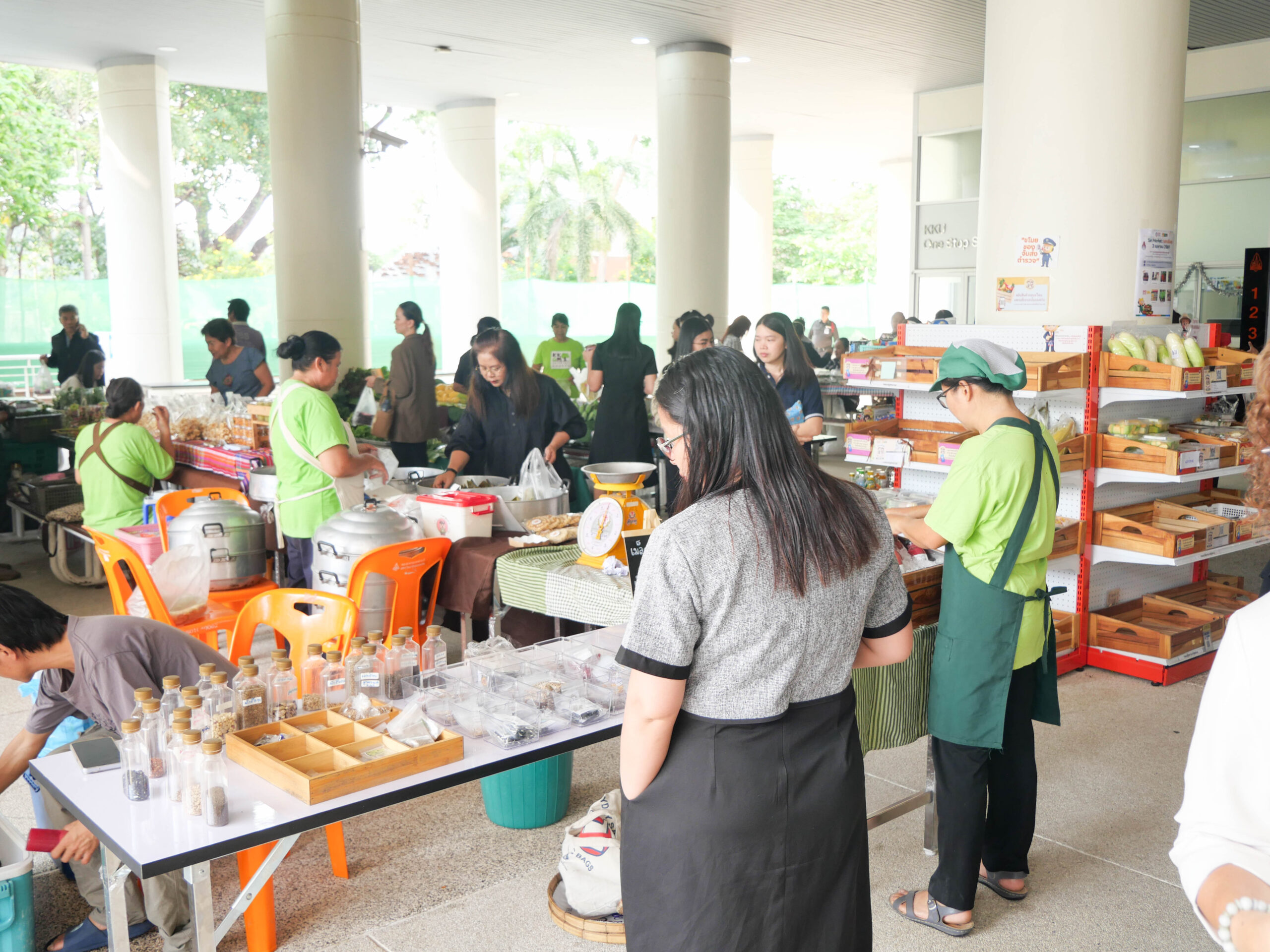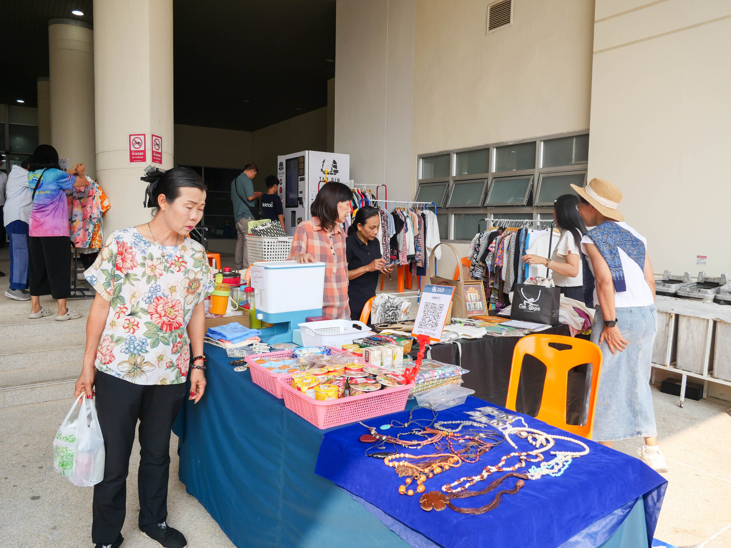 Held in front of the Central Administration Division at the Sirikunakorn Building, the market is a collaborative effort between several university departments, including the Enterprise and Sustainable Society division, the Office of the President, and the Human Resources division. The initiative is designed to create a “space of opportunity” that connects the university with the community economically and socially.