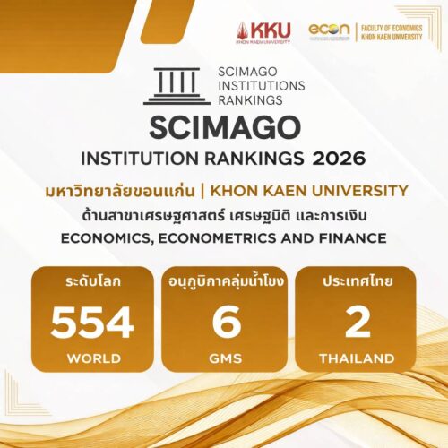 Khon Kaen University Ranked 2nd in Thailand, 6th in GMS, and 554th Globally in Economics, Econometrics, and Finance by SCImago Institutions Rankings 2026 2 March 2026 10:25 น.