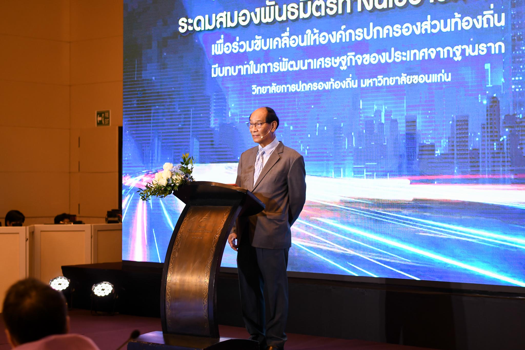 ด้าน รศ.นพ.ชาญชัย พานทองวิริยะกุล อธิการบดีมหาวิทยาลัยขอนแก่น กล่าวเพิ่มเติมว่า พันธกิจสำคัญของมหาวิทยาลัยขอนแก่น คือ การสร้างและเผยแพร่ รวมถึงการส่งเสริมให้มีการนำความรู้ที่ได้จากการศึกษาและทำวิจัย นำไปต่อยอด จนกำหนดเป็นแนวทางในการบริหารด้านนโยบายสาธารณะ โดยกำหนดให้องค์กรปกครองส่วนท้องถิ่น ซึ่งเป็นองค์กรสาธารณะ เข้ามามีบทบาทสำคัญในการพัฒนาเศรษฐกิจของประเทศอย่างยั่งยืน และเป็นส่วนสำคัญในการลดความเหลื่อมล้ำในประเทศต่อไป