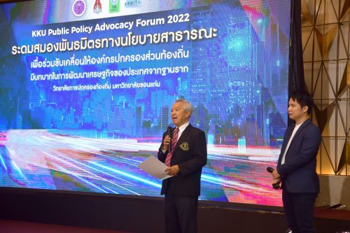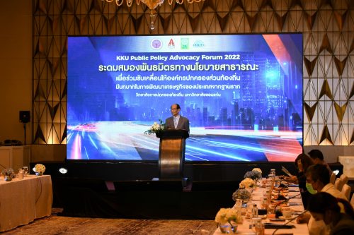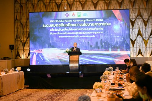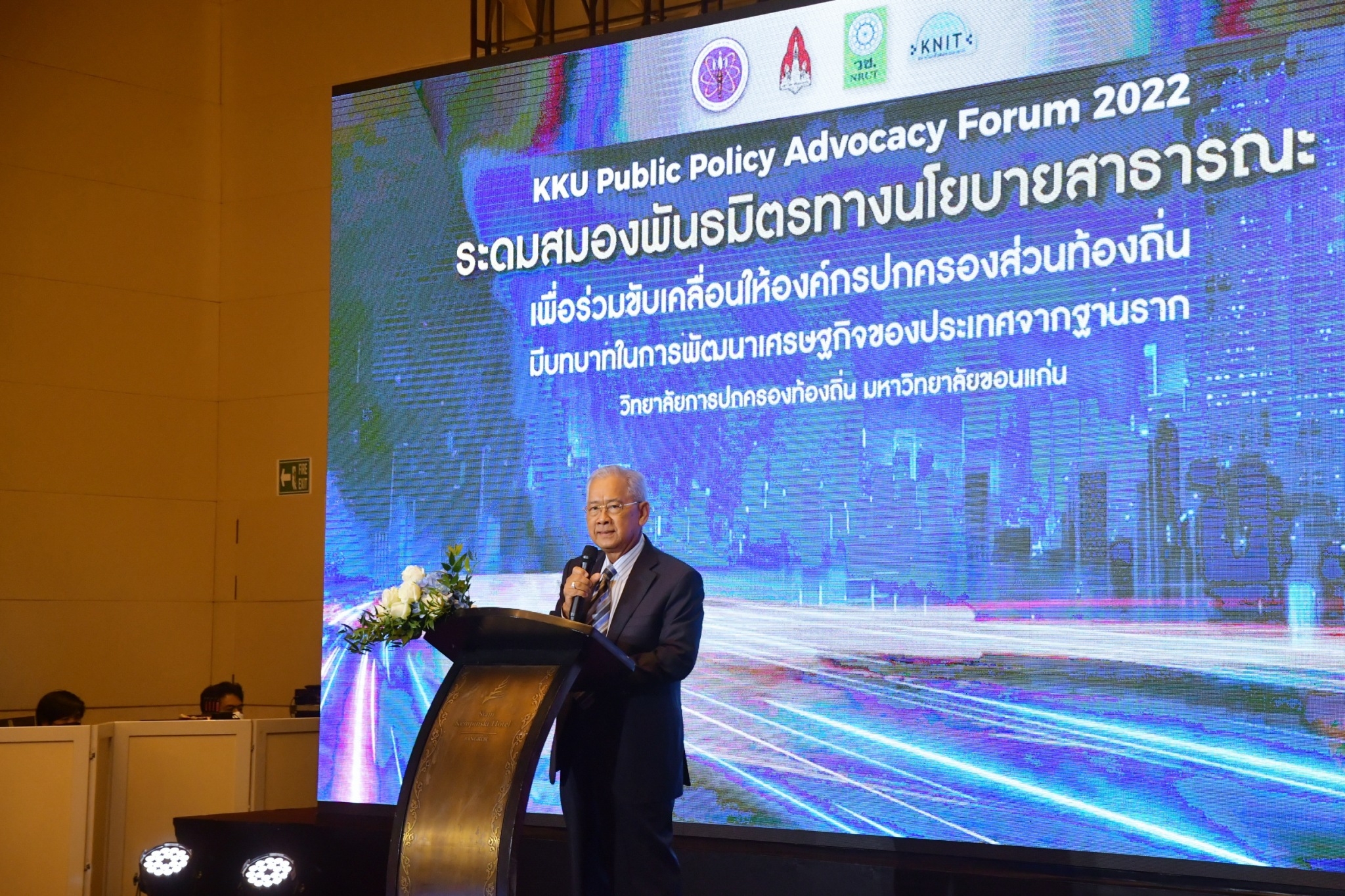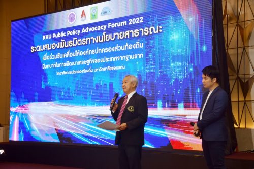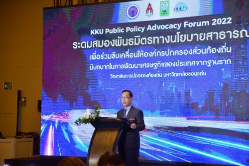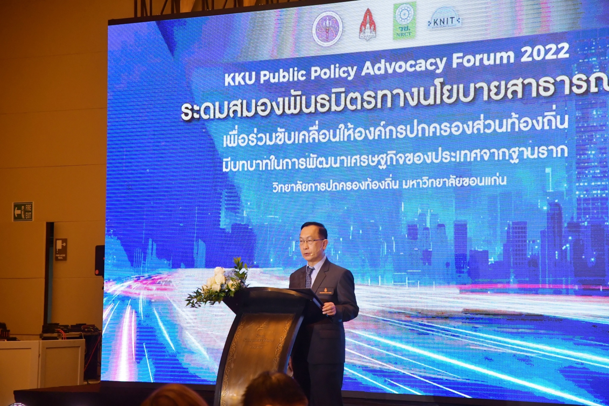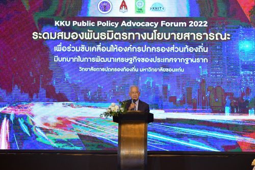 เมื่อวันที่ 21 มิถุนายน 2565 ที่โรงแรมสยาม เคมปินสกี้ กรุงเทพฯ วิทยาลัยการปกครองท้องถิ่น มหาวิทยาลัยขอนแก่น ได้จัดเวทีระดมสมองแลกเปลี่ยนความคิด ภายใต้โครงการ ‘KKU Public Policy Advocacy Forum 2022’ เป็นการแลกเปลี่ยนความคิด เพื่อเป็นแนวทางนำไปสู่การพัฒนาเป็นนโยบายสาธารณะ โดยได้เชิญผู้แทนพรรคการเมือง และผู้แทนจากหน่วยงานต่างๆ มาร่วมเสวนาแลกเปลี่ยนความคิดเห็น