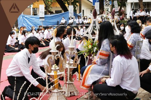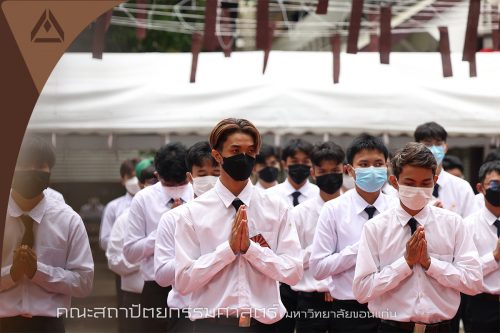 ฝ่ายพัฒนานักศึกษางานวิชาการและวิจัย ร่วมกับสโมสรนักศึกษา คณะสถาปัตยกรรมศาสตร์ มข. จัดพิธีไหว้ครู บายศรีสู่ขวัญ ครอบครูและศิลป์แต้ม คณะสถาปัตยกรรมศาสตร์ ประจำปีการศึกษา 2565 เมื่อวันที่ 21 กรกฎาคม 2565 ณ ห้องประชุมใหญ่ และบริเวณสนามบาสเกตบอล คณะสถาปัตยกรรมศาสตร์ มข.