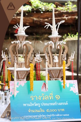สำหรับกิจกรรมการไหว้ครูของคณะสถาปัตยกรรมศาสตร์ในปีการศึกษานี้ ทางสโมสรนักศึกษาของคณะฯ ได้ตั้งใจจัดสถานที่งานออกมาเป็นรูปแบบของวัฒนธรรมอาณาจักรล้านช้าง ซึ่งอาณาจักรล้านช้างเป็นอาณาจักรของชนชาติลาว ซึ่งปัจจุบันเราได้เรียกล้านช้างว่า สปป.ลาว ซึ่งตั้งอยู่ในแถบลุ่มแม่น้ำโขงตลอดจนบางพื้นที่ในส่วนทางภาคอีสานของไทย ซึ่ง จ.ขอนแก่น ก็เป็นหนึ่งในบริเวณนั้นด้วย อาณาจักรล้านช้างมีความเจริญรุ่งเรืองทางด้านการปกครอง ศิลปวัฒนธรรม ตลอดจนพระพุทธศาสนา และทางคณะ ฯ เองก็มีการนำเอาศิลปวัฒนธรรมล้านช้างมาผสมผสานทั้งในด้านพิธีกรรม คือ บายศรีสู่ขวัญเพื่อเรียกขวัญในการเข้าสู่สถาบัน และในด้านสถาปัตยกรรมอาคารเรียนที่เห็นได้ชัดก็คืออาคาร สิม ดังนั้นทางสโมสรนักศึกษา ฯ จึงได้จัดกิจกรรมไหว้ครูครั้งนี้ในรูปแบบล้านช้างนั่นเอง