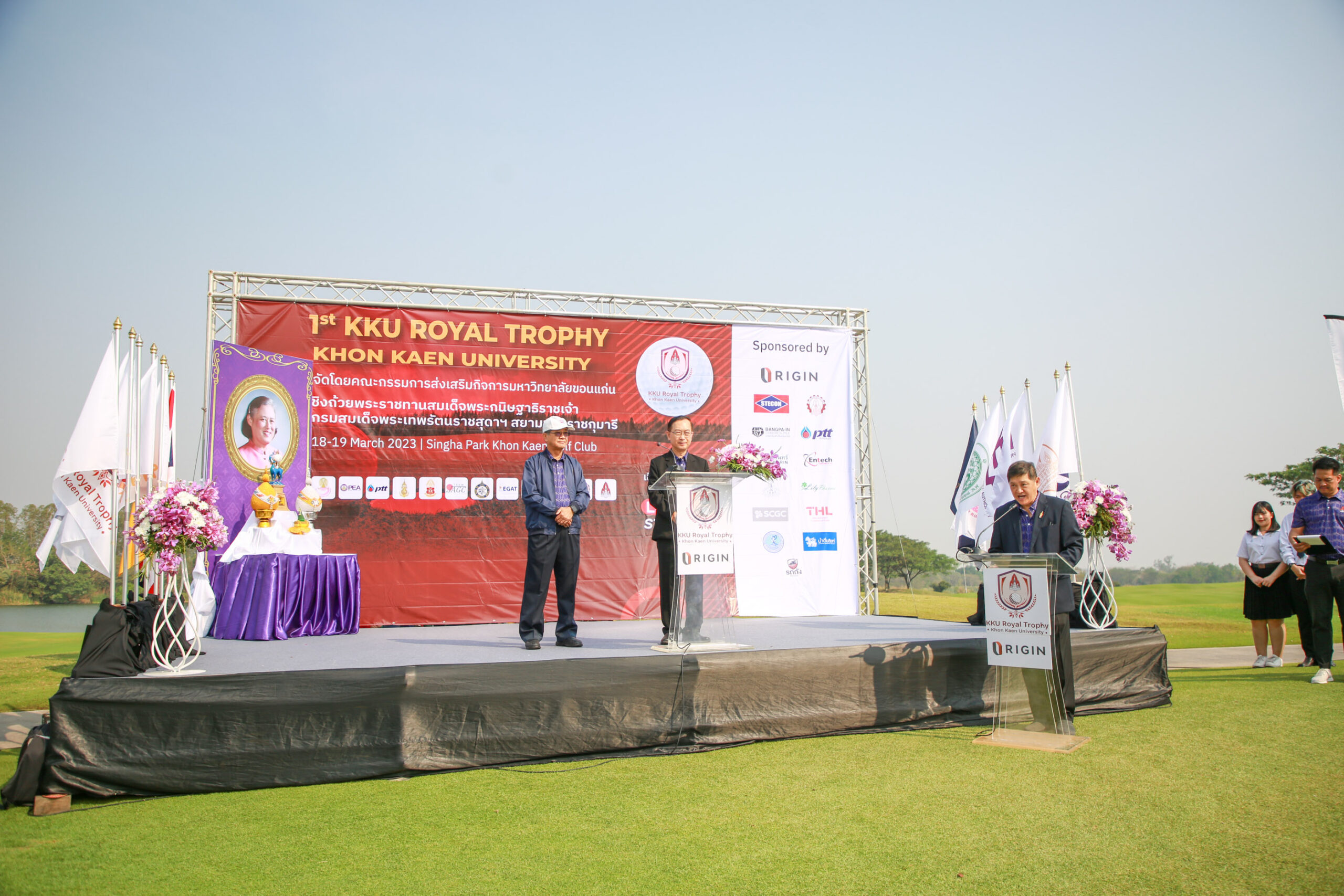 คณะกรรมการส่งเสริมกิจการมหาวิทยาลัยขอนแก่น จัดการแข่งขันกอล์ฟประเพณี “KKU Royal Trophy” ครั้งที่ 1 ฉลองครบรอบ 60 ปี มข. 1st KKU Royal Trophy” ชิงถ้วยพระราชทาน สมเด็จพระกนิษฐาธิราชเจ้า กรมสมเด็จพระเทพรัตนราชสุดา ฯ สยามบรมราชกุมารี  ระหว่างวันที่ 18 – 19 มีนาคม 2566 ณ สนามกอล์ฟ สิงห์ปาร์ค ขอนแก่น จังหวัดขอนแก่น โดยมีพิธีเปิดวันเสาร์ที่ 18 มีนาคม 2566 เวลา 09.00 น. ณ บริเวณริมสนามด้านข้างคลับเฮ้าส์ เริ่มต้นพิธีการเป็นการแสดงชุด “เชิญเที่ยวเมืองขอนแก่น” จากโรงเรียนเทศบาลบ้านหนองใหญ่ จังหวัดขอนแก่น หลังจากนั้นเป็นพิธีเปิดการแข่งขันได้รับเกียรติจาก รศ.นพ.ชาญชัย พานทองวิริยะกุล อธิการบดีมหาวิทยาลัยขอนแก่น เป็นประธานกล่าวเปิดการแข่งขัน คุณสุกิจ ศิรินรกุล ประธานคณะกรรมการส่งเสริมกิจการมหาวิทยาลัยขอนแก่น ประธานจัดการแข่งขัน กล่าวรายงาน ร่วมด้วยคณะกรรมการส่งเสริม ฯ รองอธิการบดีฝ่ายโครงสร้างพื้นฐานและสิ่งแวดล้อม ผศ.อาวุธ ยิ้มแต้  คณะกรรมการจัดงาน และนักกอล์ฟที่เข้าร่วมแข่งขันทั้ง 12 ทีม ได้แก่ ทีมราชนาวี (RTN= Royal Thai Navy), ทีมมหาวิทยาลัยสงขลานครินทร์ (PSU), ทีมมหาวิทยาลัยเกษตรศาสตร์ (KU), ทีมการไฟฟ้าฝ่ายผลิตแห่งประเทศไทย (EGAT), ทีมราชกรีฑาสโมสร (RBSC), ทีมสมาคมนิสิตเก่าจุฬาลงกรณ์มหาวิทยาลัย (CUAA), ทีมสถาบันเทคโนโลยีพระจอมเกล้าเจ้าคุณทหาร (KMITL), ทีมชมรมกอล์ฟสมาคมชาวญี่ปุ่น (JAGC), ทีมสมาคมธรรมศาสตร์ ในพระบรมราชูปถัมภ์ (TU), ทีมบริษัท ปตท. จำกัด (มหาชน) (PTT), ทีมการไฟฟ้าส่วนภูมิภาค (PEA) และ ทีมมหาวิทยาลัยขอนแก่น (KKU)