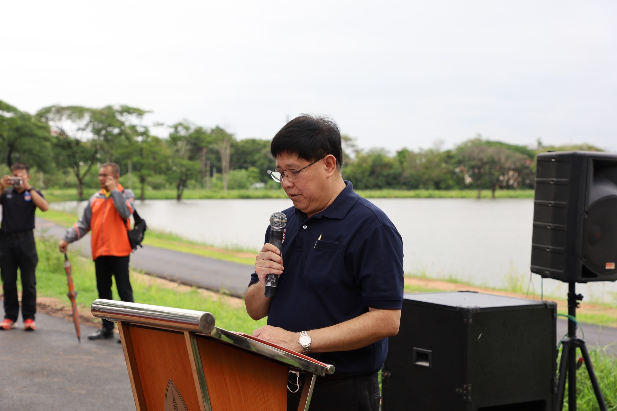 ผศ.อาวุธ ยิ้มแต้ รองอธิการบดีฝ่ายโครงสร้างพื้นฐานและสิ่งแวดล้อม กล่าวรายงานว่า สืบเนื่องจาก มหาวิทยาลัยขอนแก่น ได้มีการปรับปรุงระบบจัดการน้ำผิวดินอ่างเก็บน้ำ พร้อมทั้งปรับปรุงภูมิทัศน์บริเวณโดยรอบให้เป็นพื้นที่ออกกำลังกาย พื้นที่สันทนาการ และพักผ่อนหย่อนใจ