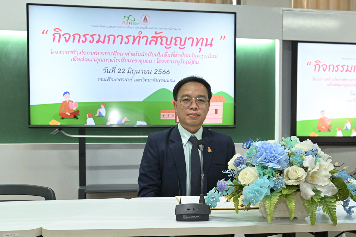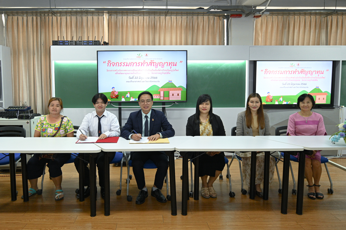 เมื่อวันที่ 22 มิถุนายน 2566 คณะศึกษาศาสตร์ มหาวิทยาลัยขอนแก่น ได้จัดกิจกรรมการทำสัญญาทุน “โครงการสร้างโอกาสทางการศึกษาสำหรับนักเรียนในพื้นที่ห่างไกลเป็นครูรุ่นใหม่เพื่อพัฒนาคุณภาพโรงเรียนของชุมชน (โครงการครูรัก(ษ์)ถิ่น) รุ่นที่ 4” จากกองทุนเพื่อความเสมอภาคทางการศึกษา (กสศ.) จำนวน 31 คน เพื่อเข้าศึกษาต่อในหลักสูตรศึกษาศาสตรบัณฑิต สาขาวิชาการศึกษาปฐมวัยและประถมศึกษา (วิชาเอกคู่การศึกษาปฐมวัยและประถมศึกษา) ปีการศึกษา 2566 โดยมี รศ.ดร.อิศรา ก้านจักร คณบดีคณะศึกษาศาสตร์ เป็นประธานในพิธีเปิดการทำสัญญาทุน และได้รับมอบอำนาจจากผู้จัดการกองทุนเพื่อความเสมอภาคทางการศึกษา ซึ่ง รศ.ดร.ดนิตา ดวงวิไล ผู้ช่วยคณบดีฝ่ายพัฒนาวิชาชีพครูและบริการวิชาการ เป็นผู้กล่าวรายงาน พร้อมด้วย รศ.ดร.จารุณี ซามาตย์ รองคณบดีฝ่ายการศึกษาและพัฒนาคุณภาพ ผศ.ดร.ศิริพงษ์ เพียศิริ ผู้ช่วยคณบดีฝ่ายบริหาร การสื่อสาร และชุมชนสัมพันธ์ และคณาจารย์ ร่วมเป็นเกียรติในกิจกรรม