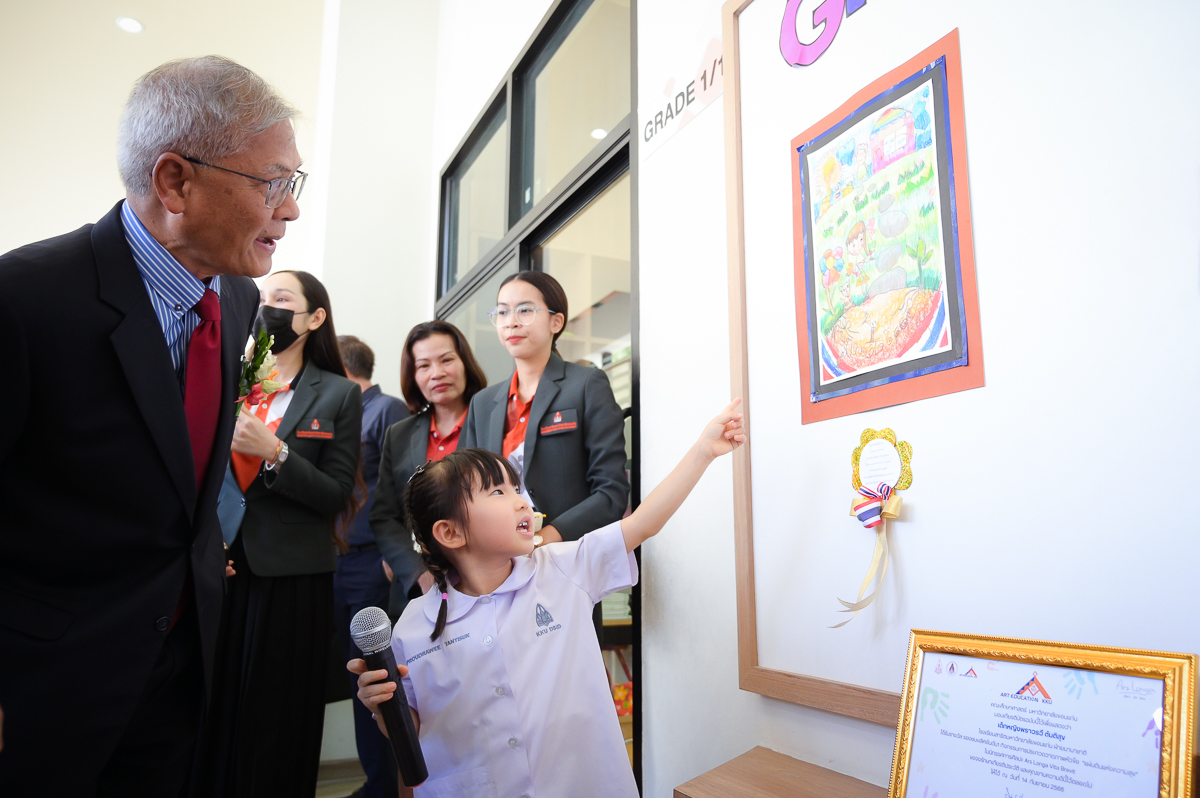 ในวันที่ 4 ตุลาคม 2566 คณะผู้บริหารและคณาจารย์คณะศึกษาศาสตร์และโรงเรียนสาธิตมหาวิทยาลัยขอนแก่น นำโดย รศ.ดร.อิศรา ก้านจักร คณบดีคณะศึกษาศาสตร์ และ ผศ.ดร.ศราวุธ จักรเป็ง รองคณบดีฝ่ายโรงเรียนสาธิตและพัฒนานวัตกรรมการศึกษา รักษาการเทนผู้อำนวยการโรงเรียสาธิตมหาวิทยาลัยขอนแก่น ร่วมต้อนรับท่านสุรพล เพชรวรา อุปนายกสภามหาวิทยาลัยขอนแก่น พร้อมด้วย ผศ.นพ.เสริมศักดิ์ สุมานนท์ กรรมการสภามหาวิทยาลัย เข้าตรวจเยี่ยมโรงเรียนสาธิตมหาวิทยาลัยขอนแก่น ฝ่ายนานาชาติ และชมนิทรรศการผลงานของนักเรียน