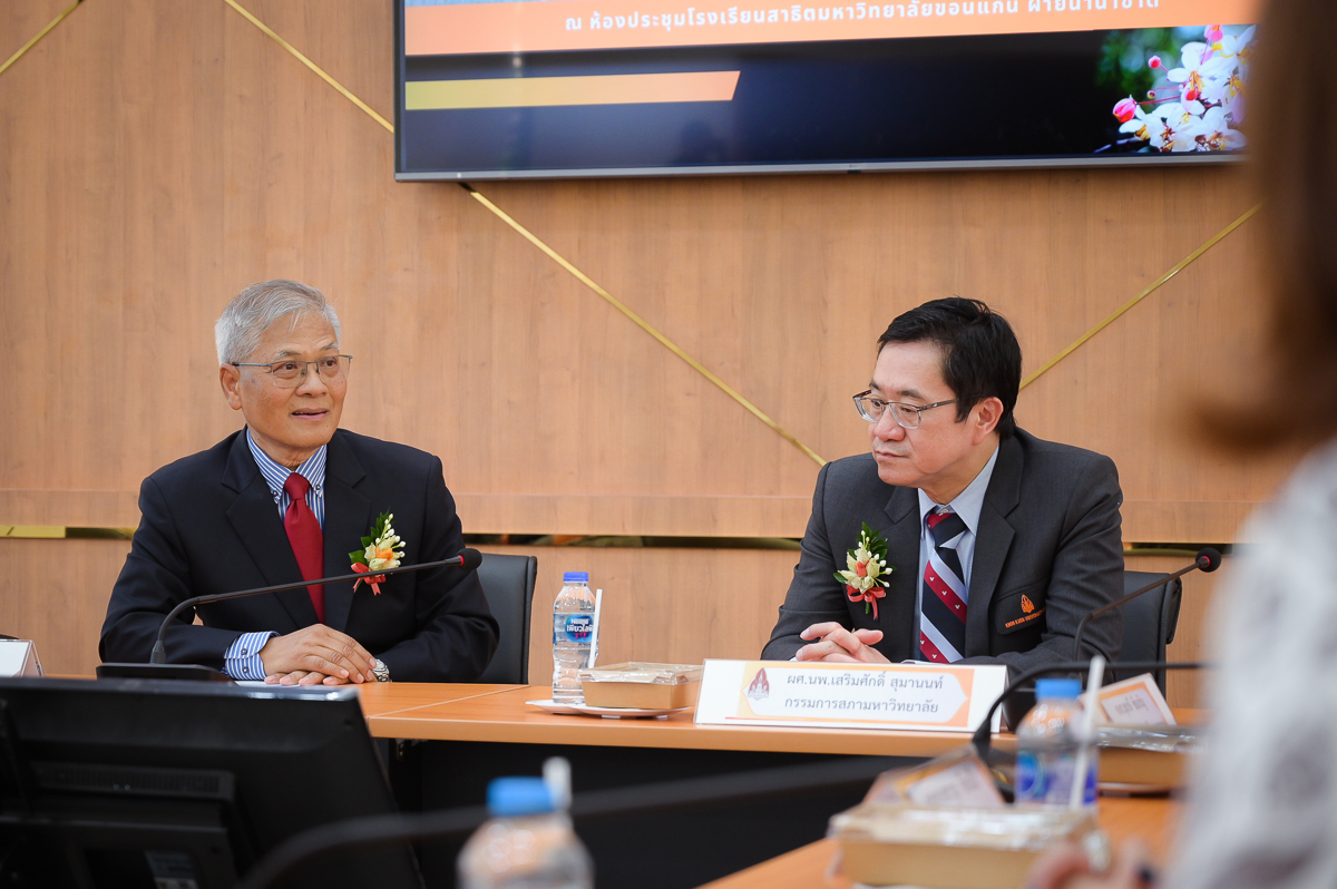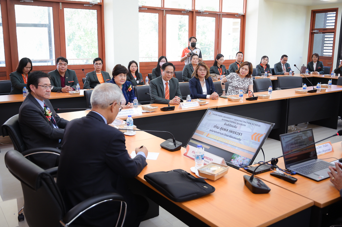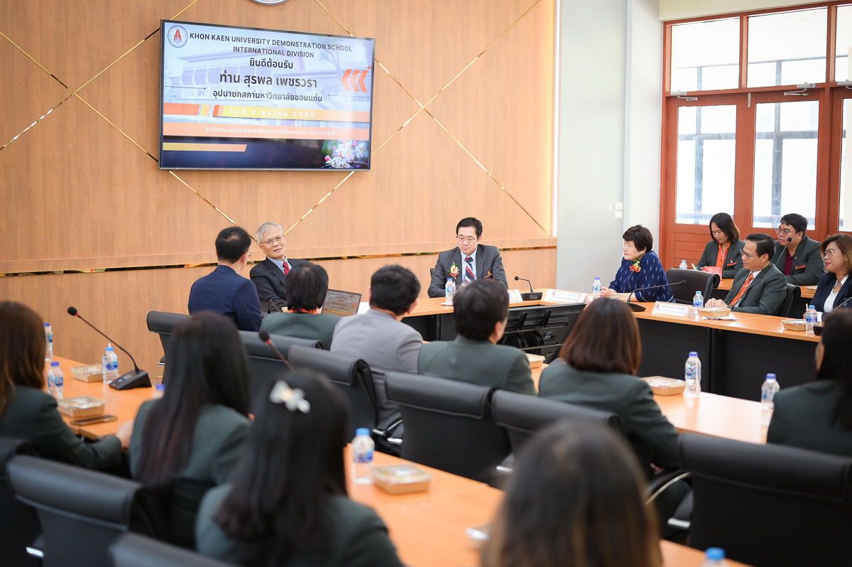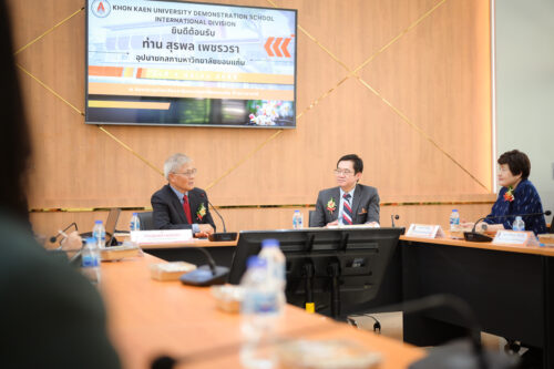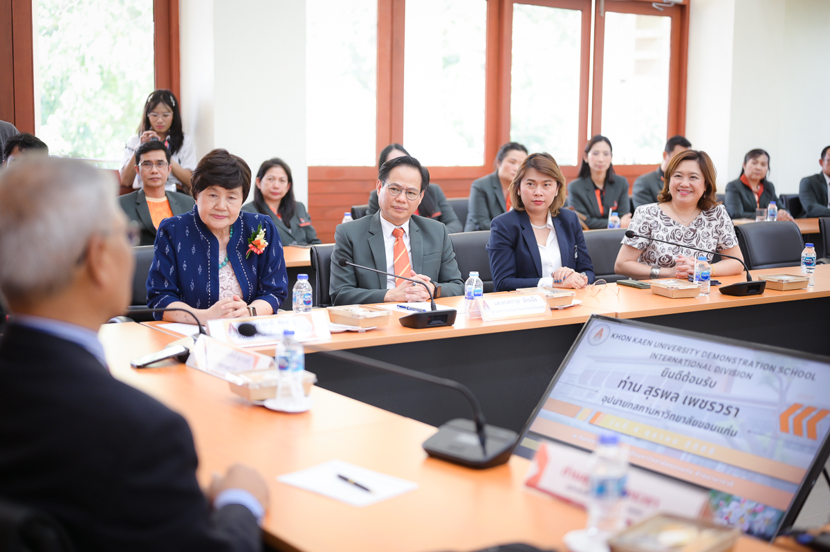 ในโอกาสนี้ คณบดีคณะศึกษาศาสตร์ได้นำเสนอรายงานผลการดำเนินงานการขับเคลื่อนโรงเรียนสาธิตฯ ตามนโยบาย Education Transformation ของอธิการบดีมหาวิทยาลัยขอนแก่น รศ.นพ.ชาญชัย พานทองวิริยะกุล ซึ่งเป็นแนวทางการดำเนินการเรียนการสอนที่เน้นการสร้างนวัตกรรมและคุณลักษณ์ที่ดีงามให้กับนักเรียน ซึ่งอุปนายกสภามหาวิทยาลัยได้ร่วมแลกเปลี่ยนประสบการณ์เพื่อเสริมแนวทางในการดำเนินการเรียนการสอนให้นักเรียนของโรงเรียนสาธิตฯ ให้เป็นนวัตกรที่มีคุณลักษณ์ที่ดีงาม และยกระดับความเป็นสากลของโรงเรียนสาธิตมหาวิทยาลัยขอนแก่น