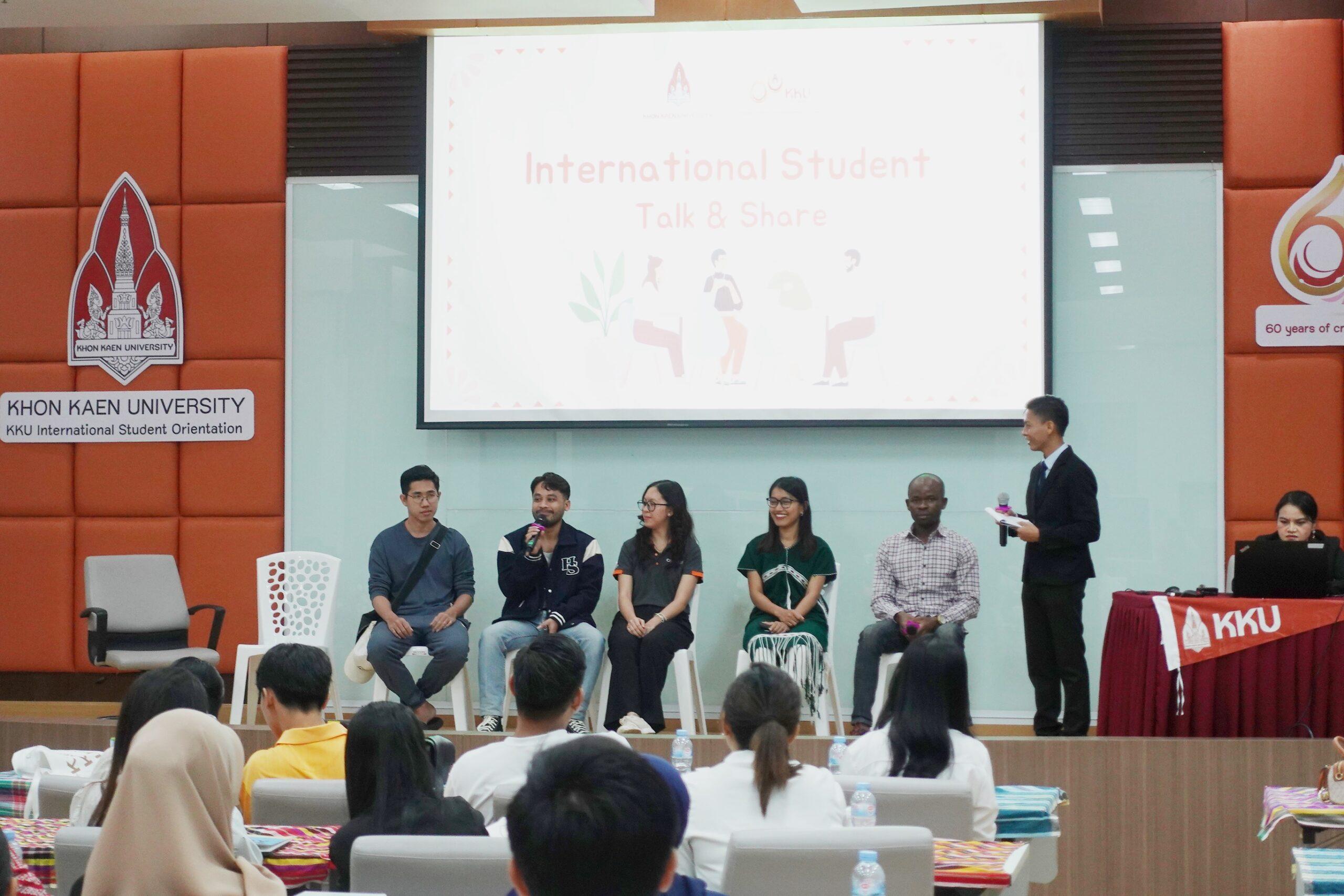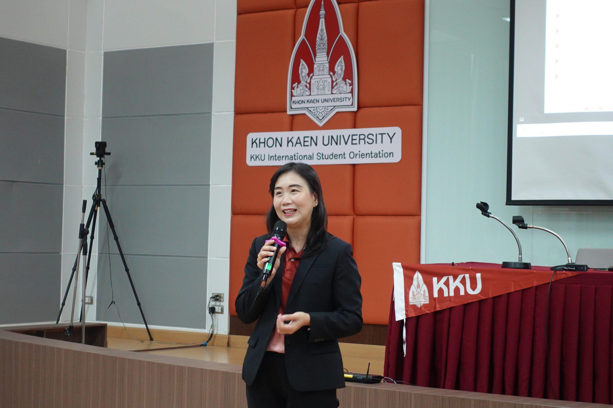 เมื่อวันที่ 14 มิถุนายน 2567 กองการต่างประเทศ มหาวิทยาลัยขอนแก่น จัดกิจกรรมปฐมนิเทศนักศึกษาต่างชาติ ภาคต้น ปีการศึกษา 2567 ณ ห้องประชุมสิริคุณากร 3 ชั้น 2 อาคารสิริคุณากร ในงานนี้ ได้รับเกียรติจาก รองศาสตราจารย์ ดร.นวรัตน์ วราอัศวปติ รองอธิการบดีฝ่ายการต่างประเทศ และ ผู้ช่วยศาสตราจารย์ ดร.อัจฉราวรรณ โตภาคงาม ผู้ช่วยอธิการบดีฝ่ายการต่างประเทศ กล่าวต้อนรับนักศึกษาต่างชาติ ซึ่งกิจกรรมมีวัตถุประสงค์เพื่อเปิดโอกาสให้นักศึกษาชาวต่างประเทศในมหาวิทยาลัยขอนแก่น ได้มีโอกาสแลกเปลี่ยนเรียนรู้และพบปะร่วมกับนักศึกษาจากชาติต่างๆ อีกทั้ง มีการแนะนำข้อมูลเกี่ยวกับการบริการจากหน่วยงานต่างๆ ได้แก่ กองการต่างประเทศ บัณฑิตวิทยาลัย สำนักบริหารและพัฒนาวิชาการ สำนักเทคโนโลยีดิจิตัล สำนักหอสมุด หน่วยบริการปฐมภูมิ มข. และกองการกีฬา นอกจากนี้ ในช่วงท้ายยังมีกิจกรรม International student talk and share เพื่อแชร์ประสบการณ์การใช้ชีวิตของนักศึกษาต่างชาติ ในมหาวิทยาลัยขอนแก่น โดยมีผู้แทนชมรมนักศึกษาต่างชาติเข้าร่วม ได้เแก่ ชมรมนักศึกษาพม่า กัมพูชา อินโดนีเซีย เวียดนาม และไนจีเรีย