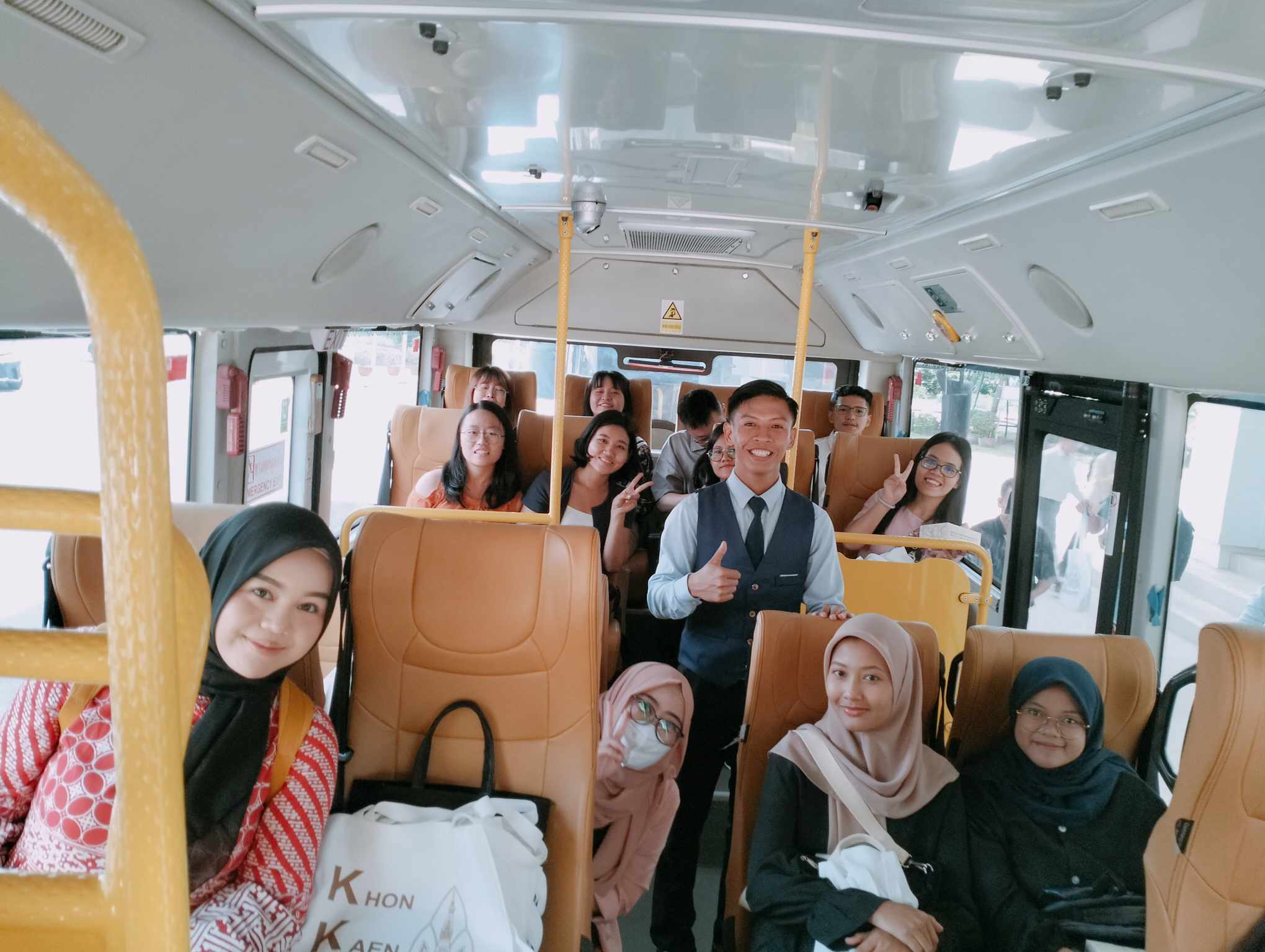 นอกจากนี้ ในช่วงบ่าย กองการต่างประเทศ มข. ได้จัดกิจกรรม KKU Campus Tour เพื่อส่งเสริมให้นักศึกษาได้สัมผัสบรรยากาศอันร่มรื่นของมหาวิทยาลัย (Green Campus) และรับทราบเส้นทาง สถานที่สำคัญ หรือหน่วยงานที่ให้บริการต่างๆ ภายในมหาวิทยาลัย นักศึกษาผู้เข้าร่วมส่วนใหญ่ มีความคิดเห็นว่า การจัดกิจกรรม KKU Campus Tour ในครั้งนี้ เป็นกิจกรรมที่ดี และสร้างความประทับใจอย่างมาก เพราะนอกจากบรรยากาศที่สวยงามภายในมหาวิทยาลัยแล้ว มหาวิทยาลัยขอนแก่นยังมีสิ่งอำนวยความสะดวกที่ทันสมัย อาทิ รถบริการ KKU Smart Transit Service และมีเพื่อนๆ คณาจารย์ และบุคลากรที่คอยแนะนำและสนับสนุนการเรียนรู้อย่างต่อเนื่อง
