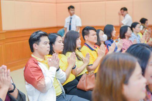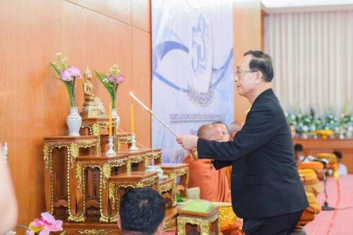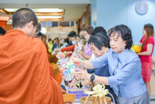 ภายในงาน (ภาคเช้า) ได้มีกิจกรรมทำบุญตักบาตร ถวายภัตตาหารเช้าแด่พระสงฆ์ จำนวน 9 รูป และพิธีสวดเจริญพุทธมนต์ เพื่อความเป็นสิริมงคล แก่ผู้บริหาร อาจารย์ บุคลากร และนักศึกษา คณะพยาบาลศาสตร์ มหาวิทยาลัยขอนแก่น และเพื่อรักษาวัฒนธรรมขนบธรรมเนียมประเพณีอันดีงาม พร้อมร่วมรำลึกและภาคภูมิใจ ในประวัติและผลงานของคณะฯ รวมถึงการประกอบกุศลกิจเพื่อประโยชน์แก่สังคม