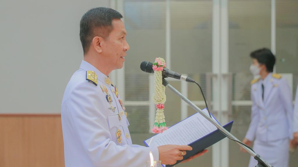 ก่อนพิธีฯ ได้มีการวางพานพุ่มเงิน – พุ่มทอง ตามลำดับ ขณะนั้นประธานในพิธีฯ มาถึงบริเวณพิธีฯ เริ่มพิธีการด้วยการถวายความเคารพ วางพานพุ่มเงิน – พานพุ่มทอง หน้าพระบรมฉายาลักษณ์พระบาทสมเด็จพระเจ้าอยู่หัว ถวายธูปเทียนแพ (เปิดกรวยกระทงดอกไม้) จุดเทียนถวายพระพรชัยมงคล กล่าวกราบบังคมทูลถวายพระพรชัยมงคล และกล่าวนำผู้ร่วมพิธีถวายพระพรชัยมงคล จากนั้น มีการบรรเลงดนตรีเพลงสรรเสริญพระบารมี