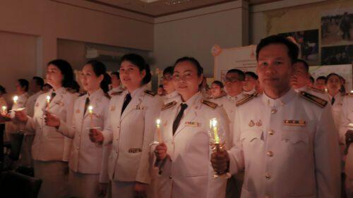 สุดท้าย ประธานในพิธีฯ หันหน้าออกสู่ผู้ร่วมพิธีฯ และรับมอบโคมเทียน ผู้ร่วมพิธีฯ จุดเทียนถวายพระพรชัยมงคล โดยประธานในพิธีฯ นำร้องเพลง “สดุดีจอมราชา” และกล่าวนำ “ทรงพระเจริญ”