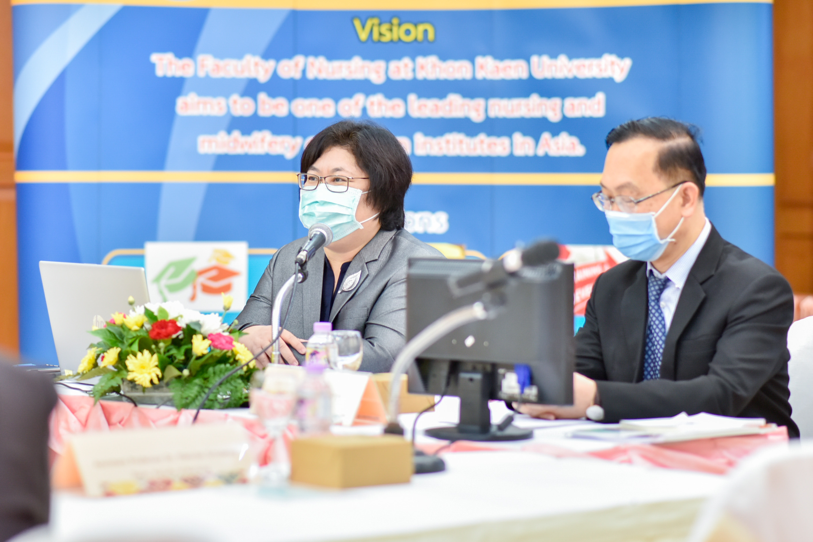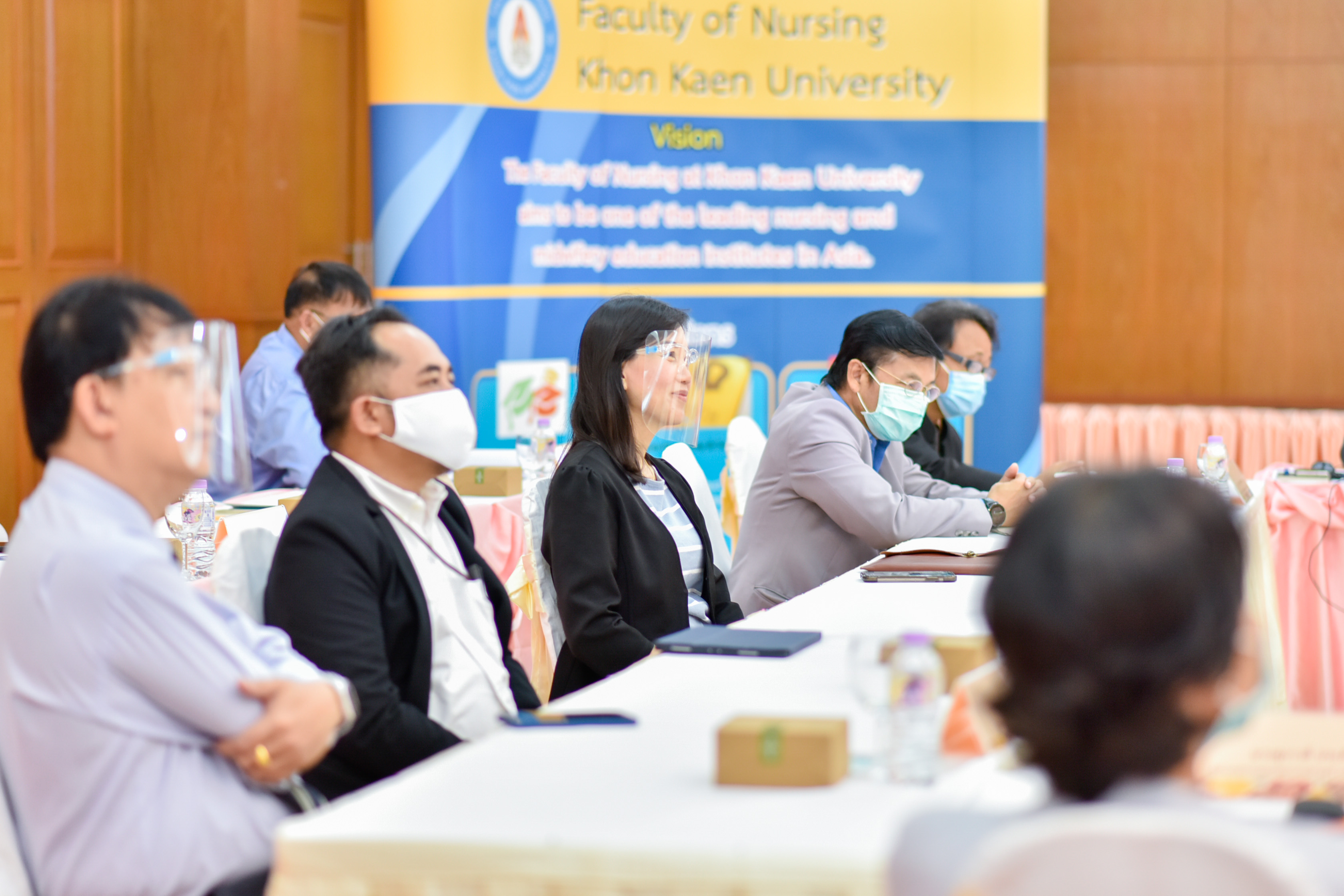 เข้าเยี่ยมและรับฟังนโยบายคณะคณะพยาบาลศาสตร์ มหาวิทยาลัยขอนแก่น เพื่อรับฟังนโยบายและให้ข้อคิดเห็นในการบริหารของคณะ และการทำวิจัย การบริการวิชาการ รวมถึงการพัฒนาการจัดการเรียนการสอนในช่วงวิกฤติการณ์โควิด-19 โดยมี ผู้ช่วยศาสตราจารย์ ดร.พักตร์วิไล ศรีแสง คณบดี พร้อมด้วยผู้บริหาร และบุคลากรคณะพยาบาลศาสตร์ ให้การต้อนรับ ณ ห้องประชุมศรีกาลพฤกษ์ ชั้น 1 คณะพยาบาลศาสตร์ มหาวิทยาลัยขอนแก่น