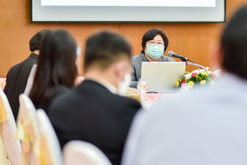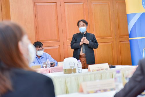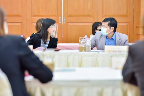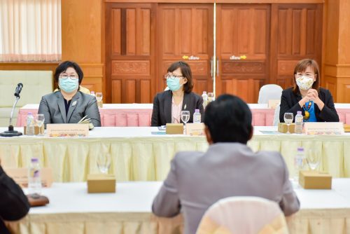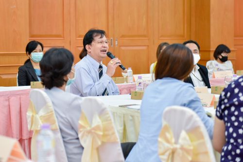 หลังจากนั้น รองศาสตราจารย์ นพ.ชาญชัย พานทองวิริยะกุล รักษาการแทนอธิการบดี ได้กล่าวถึงวัตถุประสงค์ในการเดินทางมาพบปะผู้บริหาร อาจารย์และบุคลากร ว่า “ขอชื่นชมคณะพยาบาลศาสตร์ ที่มีความก้าวหน้าและมีการพัฒนาอย่างเห็นได้ชัด และได้รับความสำเร็จมาเป็นอย่างดี และได้ให้คำแนะนำในประเด็นที่คณบดีนำเสนอนโยบาย รวมถึงเรื่องของแผนยุทธศาสตร์ของคณะเชื่อมโยงไปถึงแผนยุทธศาสตร์ของมหาวิทยาลัยเพื่อดำเนินไปในทิศทางเดียวกัน และเรื่องสถานการณ์ Covid-19 ตามที่ท่านคณบดีได้นำเสนอ ถึงการดูแลนักศึกษาถือวาครอบคลุมในทุกด้าน และขอชื่นชมศูนย์ความเป็นเลิศการพัฒนาเด็กปฐมวัย คณะพยาบาลศาสตร์ ที่ได้รับการับรองมาตรฐาน ด้านการบริหารจัดการสถานพัฒนาเด็กปฐมวัย ซึ่งเป็นสถานที่ดูแลเด็กๆ ที่มีชื่อเสียงแห่งหนึ่งใน จ.ขอนแก่น