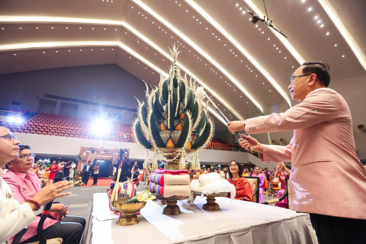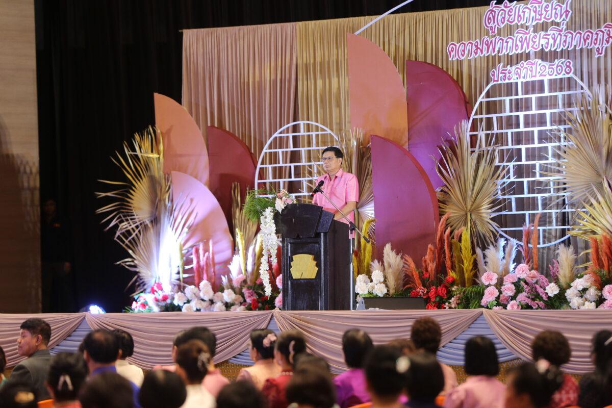เมื่อวันที่ 30 กันยายน 2568 เวลา 11.00 – 16.30 น. มหาวิทยาลัยขอนแก่นจัดงานพิธีมุทิตาจิตและบายศรีสู่ขวัญผู้เกษียณอายุราชการ “สู่เส้นชัยวัยเกษียณ ความพากเพียรที่ภาคภูมิ” ประจำปี 2568 เพื่อแสดงความขอบคุณและเชิดชูบุคลากรผู้เกษียณอายุราชการจำนวน 264 ท่าน ทั้งสายวิชาการและสายสนับสนุน ที่ได้ปฏิบัติหน้าที่ด้วยความทุ่มเทและสร้างสรรค์ผลงานให้แก่มหาวิทยาลัยอย่างต่อเนื่อง ส่งเสริมให้บุคลากรทุกท่านได้แลกเปลี่ยนความทรงจำอันงดงาม และสานต่อความผูกพันกับสถาบันแม้หลังเกษียณอายุราชการ ทั้งนี้ได้รับเกียรติจาก รศ.นพ.ชาญชัย พานทองวิริยะกุล อธิการบดีมหาวิทยาลัยขอนแก่น เป็นประธานในพิธี พร้อมด้วยผู้บริหาร คณาจารย์ และบุคลากรร่วมงาน ณ ศูนย์ประชุมอเนกประสงค์กาญจนาภิเษก มหาวิทยาลัยขอนแก่น