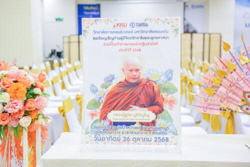 วันพุธ ที่ 15 ตุลาคม 2568 เวลา 07.00 น. อาจารย์ณัฐสมล ธนกุลรังสฤษดิ์ รองอธิการบดีฝ่ายกฎหมายและสื่อสารองค์กร ได้รับเกียรติเป็นประธาน ในพิธีทำบุญตักบาตร เนื่องในโอกาสครบรอบ 4 ปี วันคล้ายวันสถาปนาวิทยาลัยการคอมพิวเตอร์ โดยได้รับเกียรติจาก รองศาสตราจารย์ ดร.สิรภัทร เชี่ยวชาญวัฒนา คณบดีวิทยาลัยการคอมพิวเตอร์ พร้อมด้วยผู้บริหาร อาจารย์ บุคลากร และนักศึกษาให้การต้อนรับอย่างอบอุ่น และได้รับความเมตตาจาก หลวงปู่ยูวิน ภูริปัญโญ วัดป่าสว่างพร บ้านหนองตะนา ตำบลเขาสวนกวาง อำเภอเขาสวนกวาง จังหวัดขอนแก่น เมตตามาเป็นประธานฝ่ายสงฆ์ พร้อมคณะพระภิกษุสงฆ์รวม 9 รูป ประกอบพิธีเจริญพระพุทธมนต์ และรับบิณฑบาต ณ ชั้น 1 อาคารวิทยวิภาส