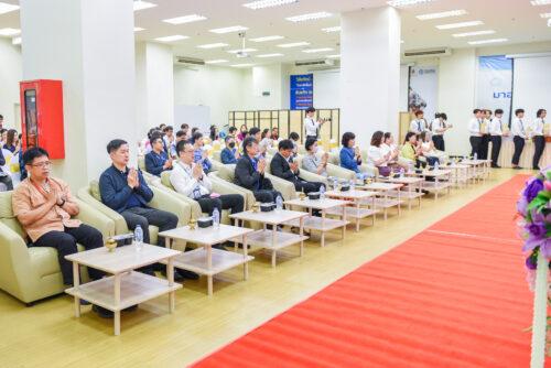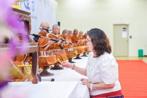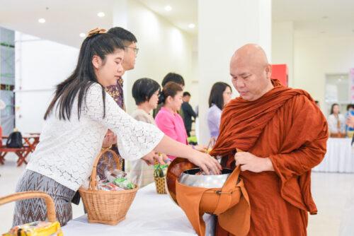 บรรยากาศภายในงานเป็นไปด้วยความเรียบง่ายและอบอุ่น ผู้บริหาร คณาจารย์ บุคลากร ศิษย์ปัจจุบัน ศิษย์เก่า และแขกผู้มีเกียรติ ร่วมกันทำบุญตักบาตร ต่อด้วยพิธีเจริญพระพุทธมนต์ ถวายภัตตาหาร ถวายเครื่องไทยธรรม และรับพรเพื่อความเป็นสิริมงคลแก่ผู้มาร่วมงาน