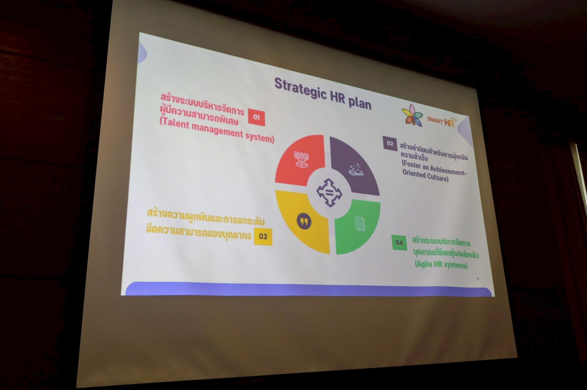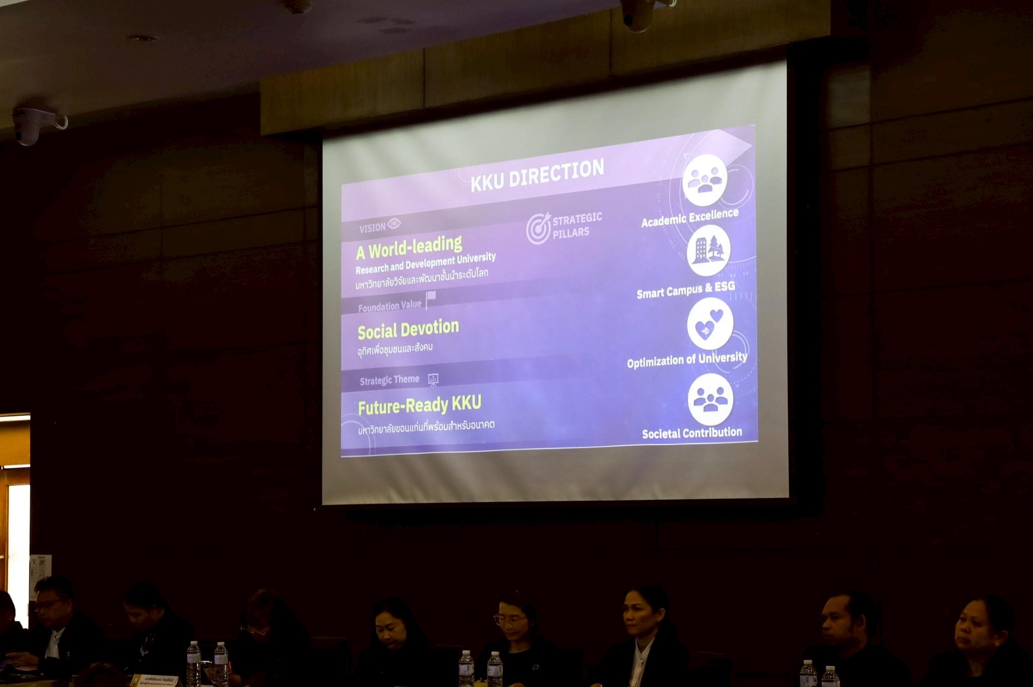 รองศาสตราจารย์ ดร.ภัทรวิทย์ พลพินิจ รองอธิการบดีฝ่ายทรัพยากรบุคคล มหาวิทยาลัยขอนแก่น กล่าวว่า มหาวิทยาลัยขอนแก่นมุ่งวิสัยทัศน์การเป็นมหาวิทยาลัยวิจัยและพัฒนาชั้นนำระดับโลก ขณะนี้เป็นวาระที่ 2 ของท่านอธิการบดี การบริหารงานมุ่งเน้นการปรับเปลี่ยนองค์กรอย่างต่อเนื่องผ่านกระบวนการ Transformation ที่ครอบคลุมทุกมิติ ทั้งการจัดการศึกษา การวิจัย และการบริหารจัดการทรัพยากรบุคคล “ปีนี้เรากำหนดธีมให้มหาวิทยาลัยเป็น ‘Future Ready KKU’ โดยมุ่งเน้นการใช้เทคโนโลยี โดยเฉพาะ AI เข้ามาเพิ่มประสิทธิภาพและขับเคลื่อนพันธกิจทั้ง 4 ด้าน ไม่ว่าจะเป็นการเรียนการสอน วิจัย บริการวิชาการ และศิลปวัฒนธรรม ขณะเดียวกัน เราใช้ค่านิยม SMART เป็นแกนหลักในการขับเคลื่อนองค์กร พร้อมพัฒนาระบบบริหารจัดการที่โปร่งใสและมีประสิทธิภาพผ่านการใช้ OKRs และเครื่องมือดิจิทัลต่างๆ”