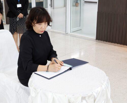 วันที่ 27 ตุลาคม 2568 เวลา 15.30 น. ณ บริเวณโถง ชั้น 1 อาคาร 6 คณะพยาบาลศาสตร์ มหาวิทยาลัยขอนแก่น รองศาสตราจารย์ ดร.อัมพรพรรณ ธีรานุตร คณบดี พร้อมด้วยผู้บริหาร คณาจารย์ และบุคลากร ร่วมพิธีลงนามถวายความอาลัยแด่ สมเด็จพระนางเจ้าสิริกิติ์ พระบรมราชินีนาถ พระบรมราชชนนีพันปีหลวง เพื่อแสดงความจงรักภักดีและน้อมรำลึกในพระมหากรุณาธิคุณอันหาที่สุดมิได้ ด้วยบรรยากาศแห่งความอาลัยและความสำนึกในพระมหากรุณาธิคุณอันยิ่งใหญ่ ที่พระองค์ทรงมีต่อพสกนิกรชาวไทยตลอดรัชสมัย ซึ่งในการนี้คณะฯ ได้จัดโต๊ะสำหรับบุคลากรที่ไม่ได้เข้าร่วมพิธีลงนามถวายความอาลัยฯ ในวันเวลาและสถานที่ดังกล่าว