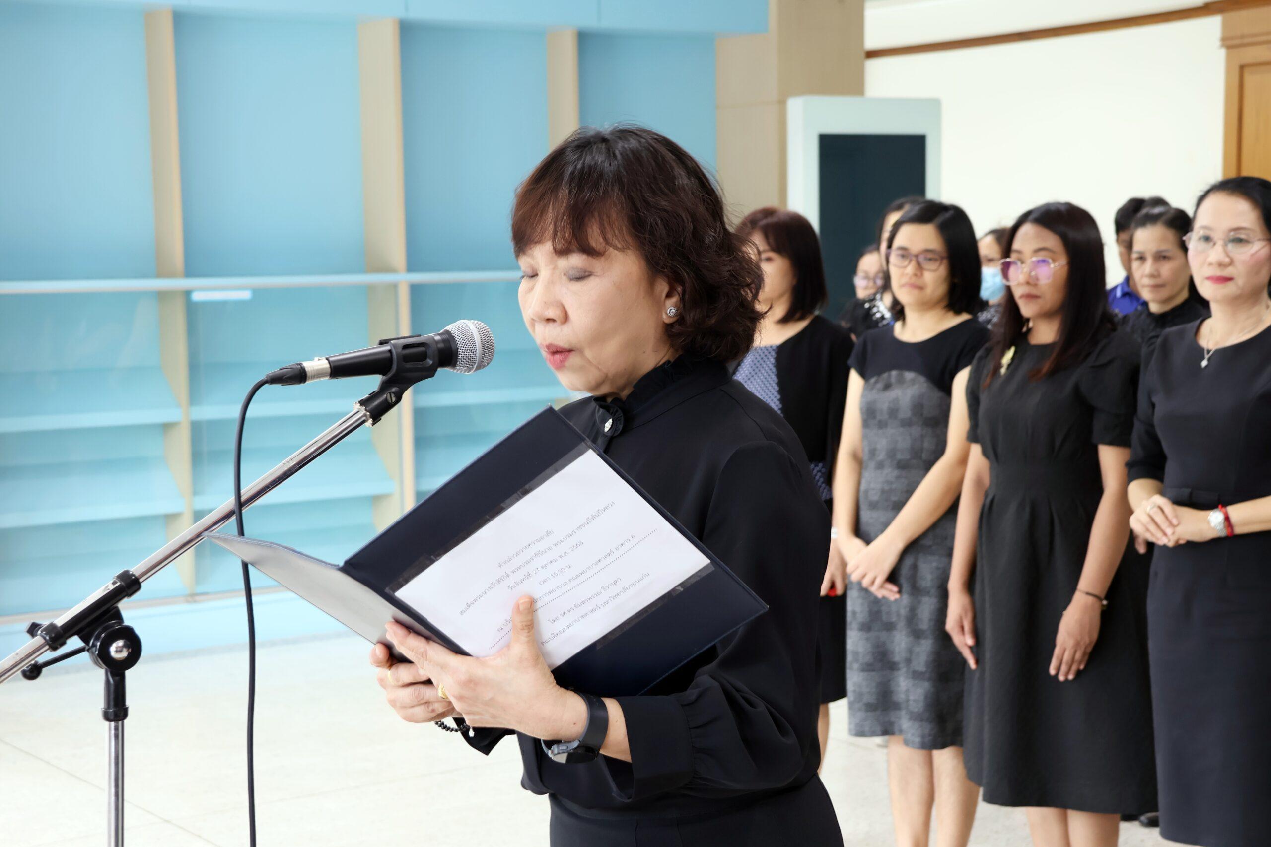 วันที่ 27 ตุลาคม 2568 เวลา 15.30 น. ณ บริเวณโถง ชั้น 1 อาคาร 6 คณะพยาบาลศาสตร์ มหาวิทยาลัยขอนแก่น รองศาสตราจารย์ ดร.อัมพรพรรณ ธีรานุตร คณบดี พร้อมด้วยผู้บริหาร คณาจารย์ และบุคลากร ร่วมพิธีลงนามถวายความอาลัยแด่ สมเด็จพระนางเจ้าสิริกิติ์ พระบรมราชินีนาถ พระบรมราชชนนีพันปีหลวง เพื่อแสดงความจงรักภักดีและน้อมรำลึกในพระมหากรุณาธิคุณอันหาที่สุดมิได้ ด้วยบรรยากาศแห่งความอาลัยและความสำนึกในพระมหากรุณาธิคุณอันยิ่งใหญ่ ที่พระองค์ทรงมีต่อพสกนิกรชาวไทยตลอดรัชสมัย ซึ่งในการนี้คณะฯ ได้จัดโต๊ะสำหรับบุคลากรที่ไม่ได้เข้าร่วมพิธีลงนามถวายความอาลัยฯ ในวันเวลาและสถานที่ดังกล่าว