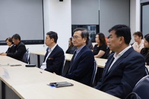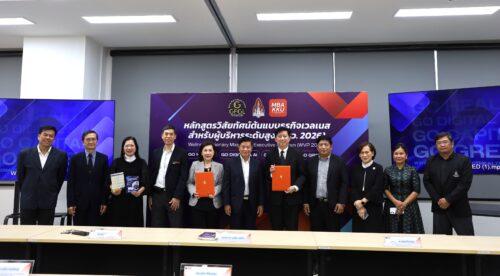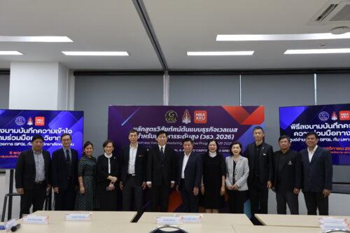 พิธีลงนามนำโดย ดร.ศักดิ์ชัย เจริญศิริพรกุล คณบดีวิทยาลัยบัณฑิตศึกษาการจัดการ และประธานคณะกรรมการหลักสูตร วธว.2026 พร้อมด้วย คุณสุวดี ปัญจริยางกูร ผู้อำนวยการศูนย์ GFGL และคณะกรรมการหลักสูตร